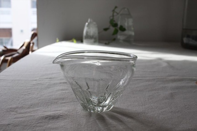 サイズ:95~98mm×80~83mm H65mm~68mm 伊藤さんは、栃木県茂木で再生ガラスの作品を作られます。 温かみのあるガラスの器。細かい気泡とアンティークのようなゆらぎに懐かしさを感じます。 上に向かって広がるピッチャー。 たれやドレッシング、コンポートやジャム。食材の色がより鮮やかに映えるピッチャーです。 一つ一つ手作りですので、サイズや色味、表情が少しずつ異なります。 撮影時の光の加減や覧になるディスプレイによっても多少の違いが出ます。 画像と若干の違いがありますことをご了承ください。
