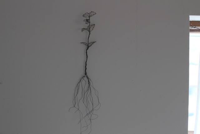 サイズ: 290mm×42mm H30mm 材料:針金(鉄) 針金という無機質な素材がしなやかに生きる植物の命を表現する。 作家の横山真美さんの工房は愛媛県松山市にあります。 お花屋さんで見かける可憐な花、道端で力強く生きる草花、山の中で枝に絡む繊細な蔓、儚げな山野草。 その植物の清らかな魂が作品に移されたように感じます。 モノ黒の世界にて、凛とした存在感を放つ永遠に咲く花。 壁に掛けたり、花器に生けたり、また根を広げて立たせることもできます。 色々にお楽しみください。 作品は一点ものです。写真の作品をお送りしいたしますが、撮影の光の加減やご覧になるディスプレイによって色味など実物との微妙な差異がございますことをご了承ください。 鉄素材を使用しているため色は一定ではなく、場所によって銀色、黒色、錆色等、経年変化により様々な表情を楽しんでいただくアート作品でございます。また、少量の粉が出ていることがございますが、加工時に鉄が結晶化したものであり作品の品質に問題はありません。 時の流れと共に経年変化していくことをお含みおきくださいませ。錆の発生状況により、ファブリック等の布製品に触れて長期に飾っていただく場所には布移りにご注意ください。 また、針金の性質上、強い衝撃には弱いためお取扱の際にはご注意ください。 穏やかな暮らしと共に、変化を楽しみながら育ててくださいましたら幸いでございます。