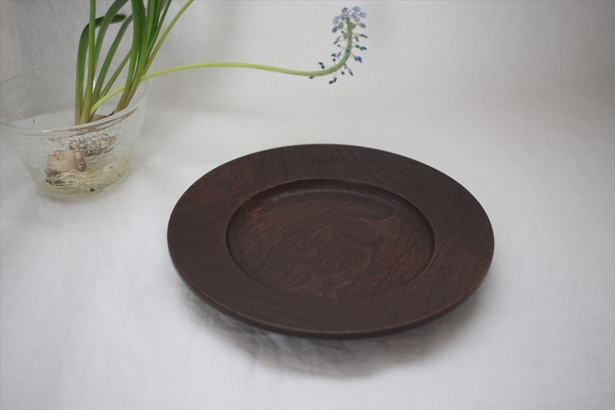 しっとりと奥深い焦げ茶。控えめな光沢が美しいリム皿。