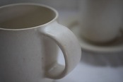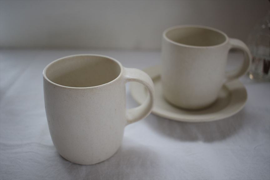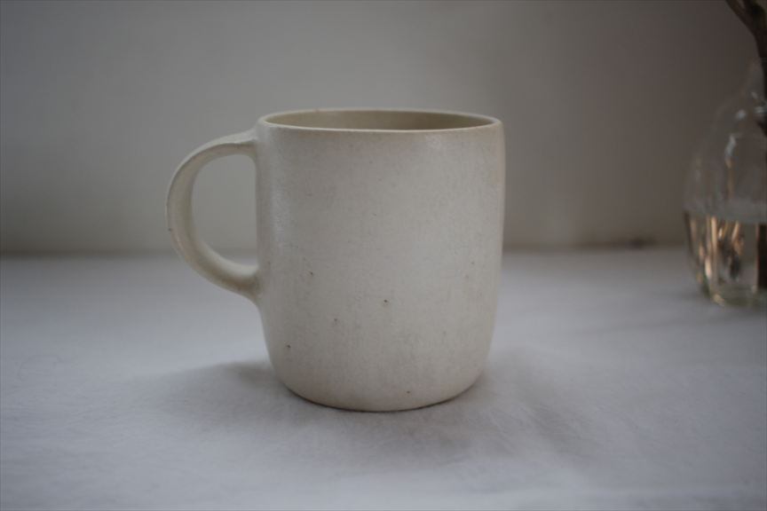 持ち手の形もかわいいマグです。時間とともに貫入が入って色味が少し変化していきます。変わっていく様もお楽しみください。