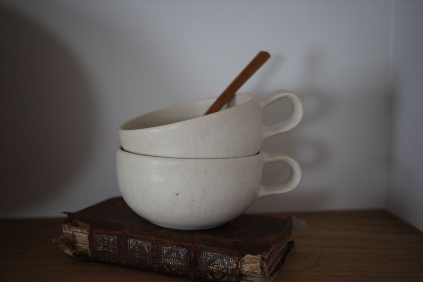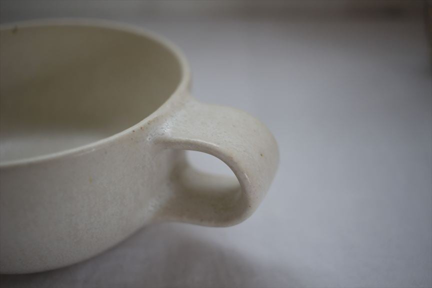 持ち手の形もかわいいです。時間とともに貫入が入って色味が少し変化していきます。変わっていく様もお楽しみください。