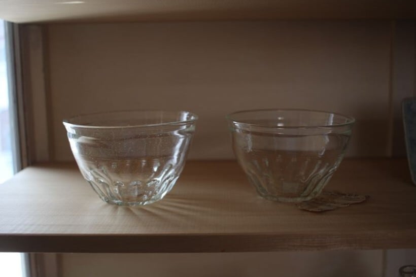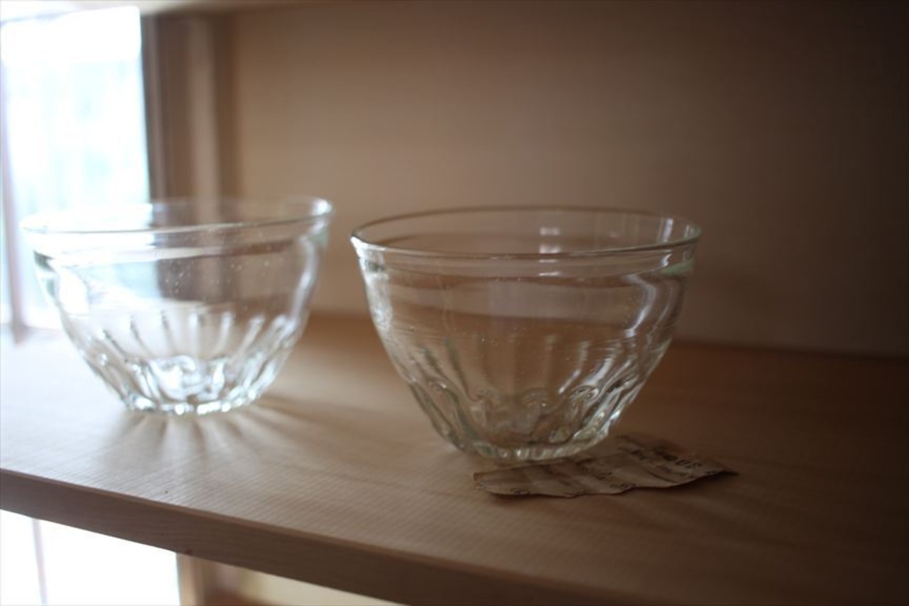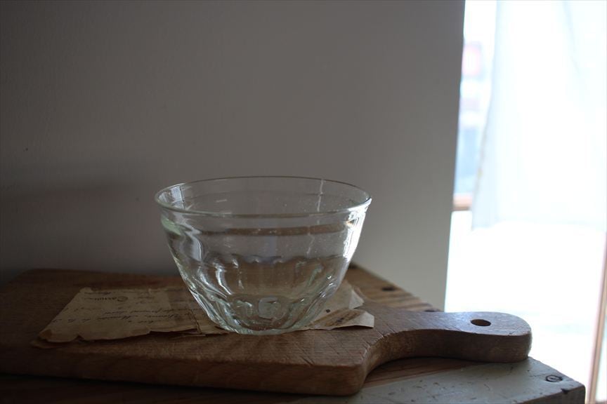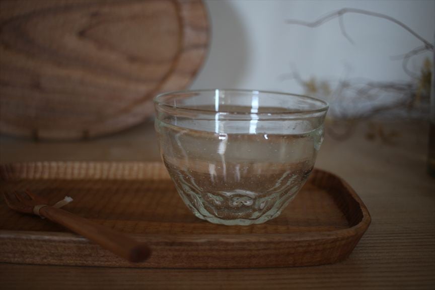 温かみのあるガラスの器。細かい気泡とアンティークのようなゆらぎに懐かしさを感じます。