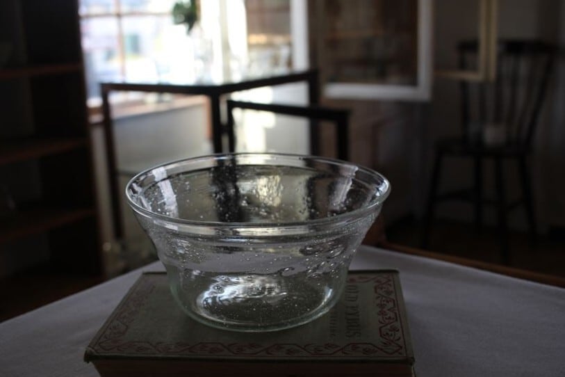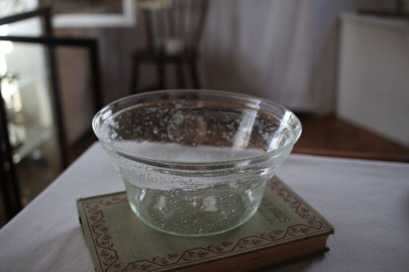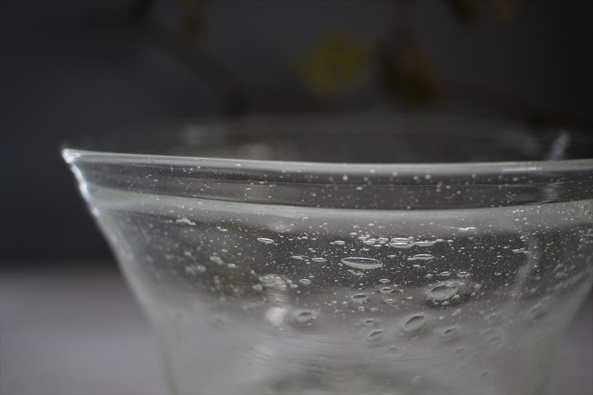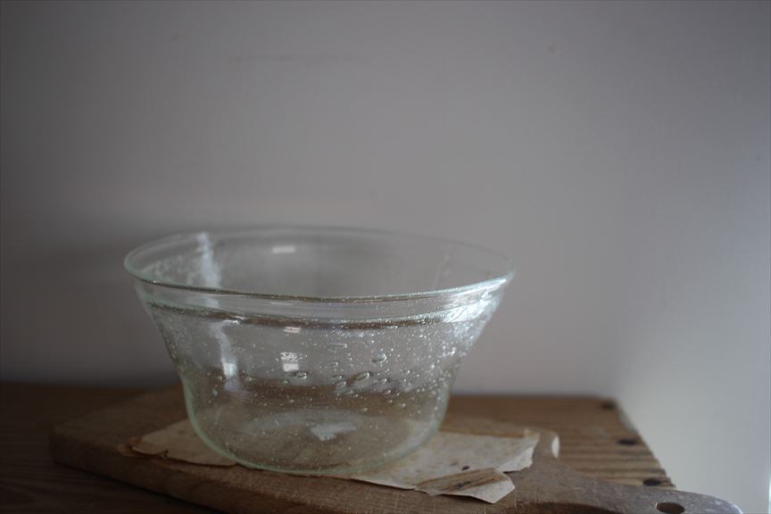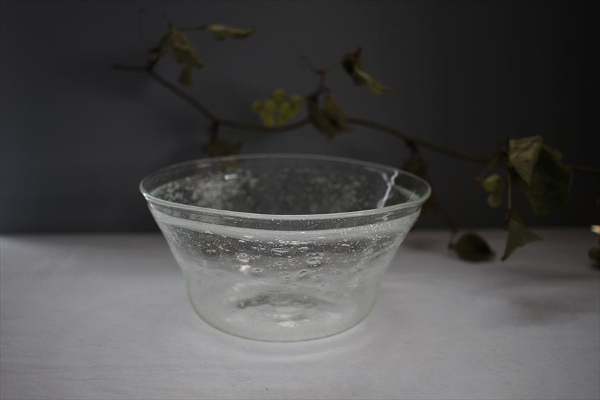 温かみのあるガラスの器。細かい気泡とアンティークのようなゆらぎに懐かしさを感じます。