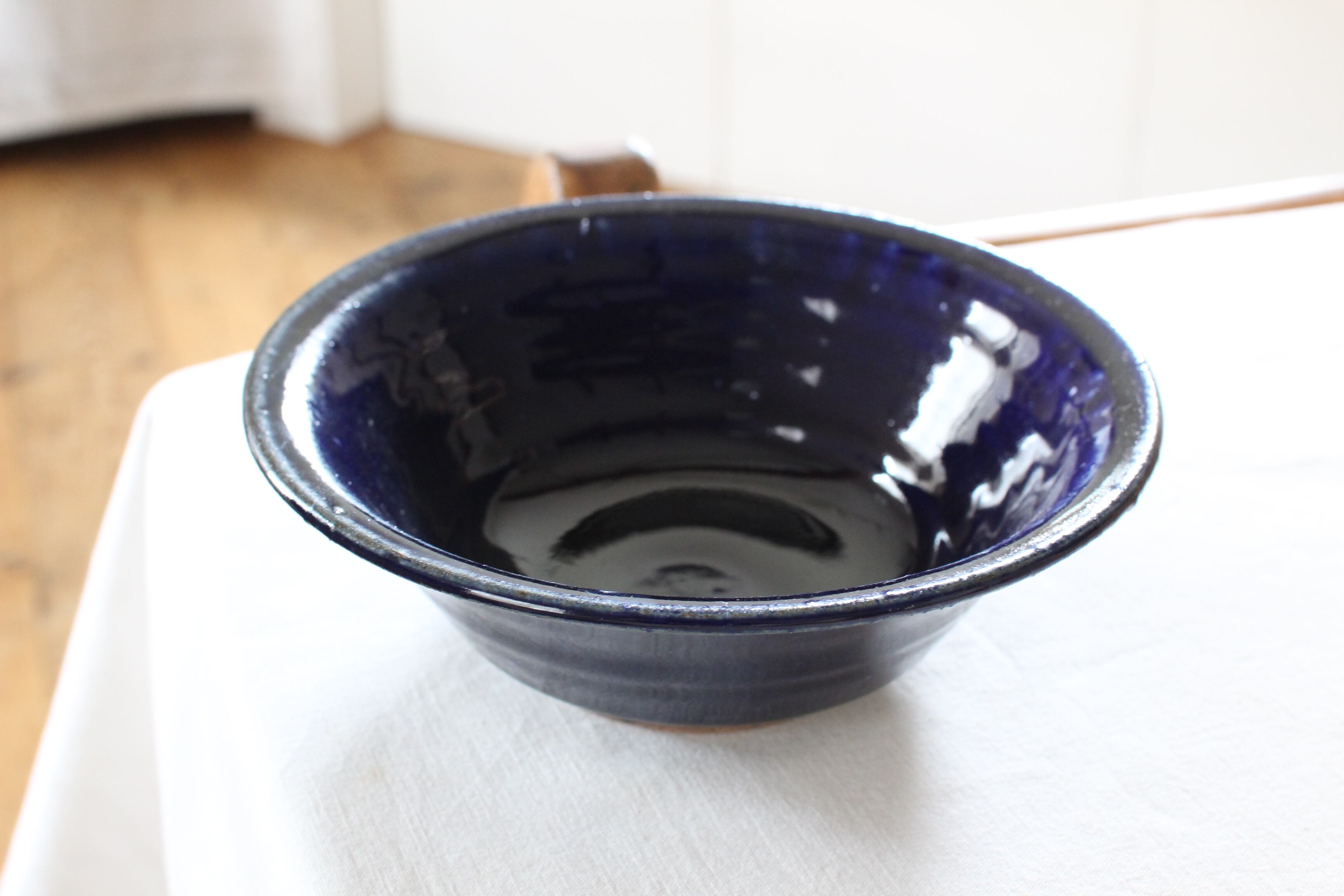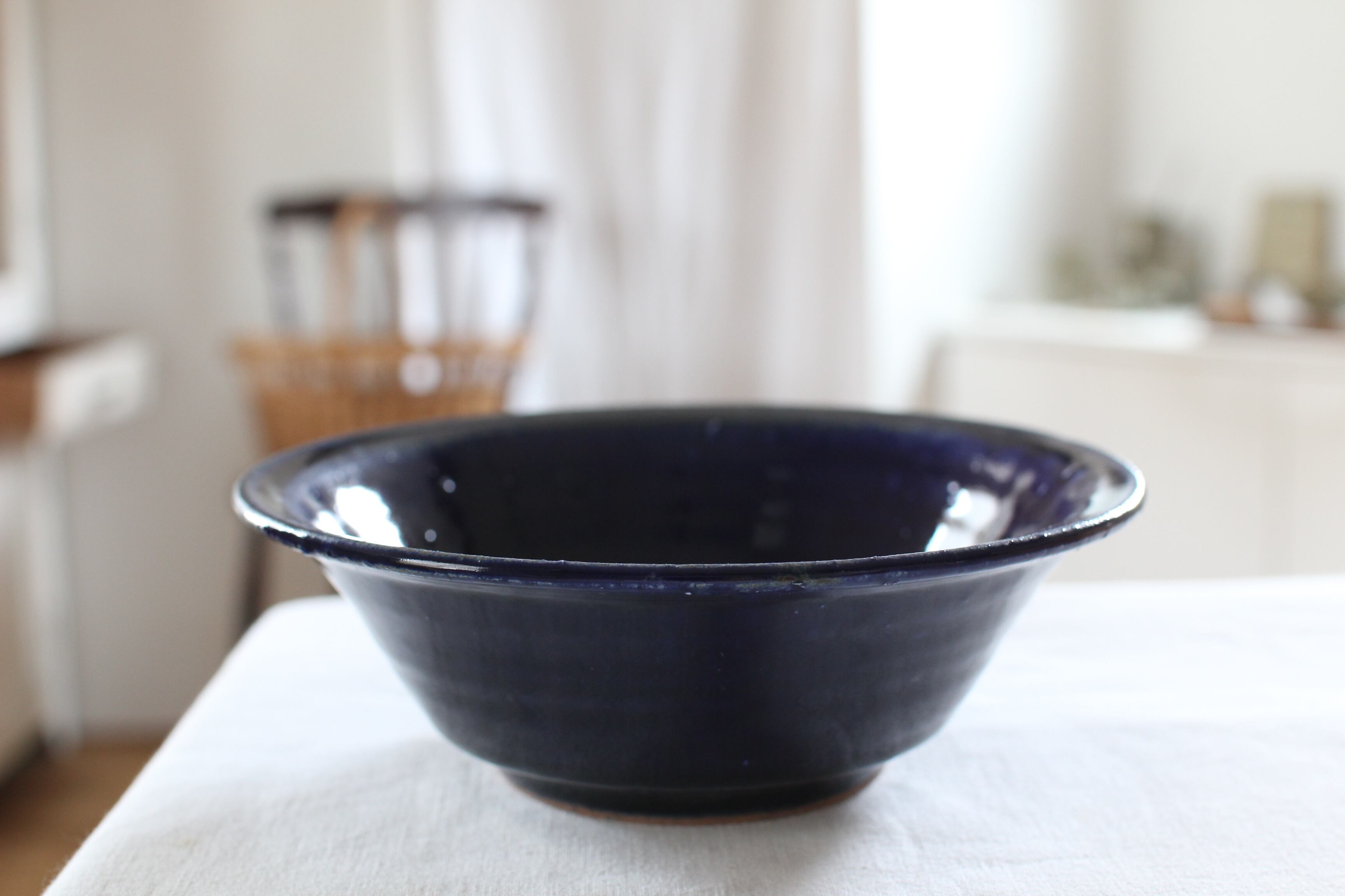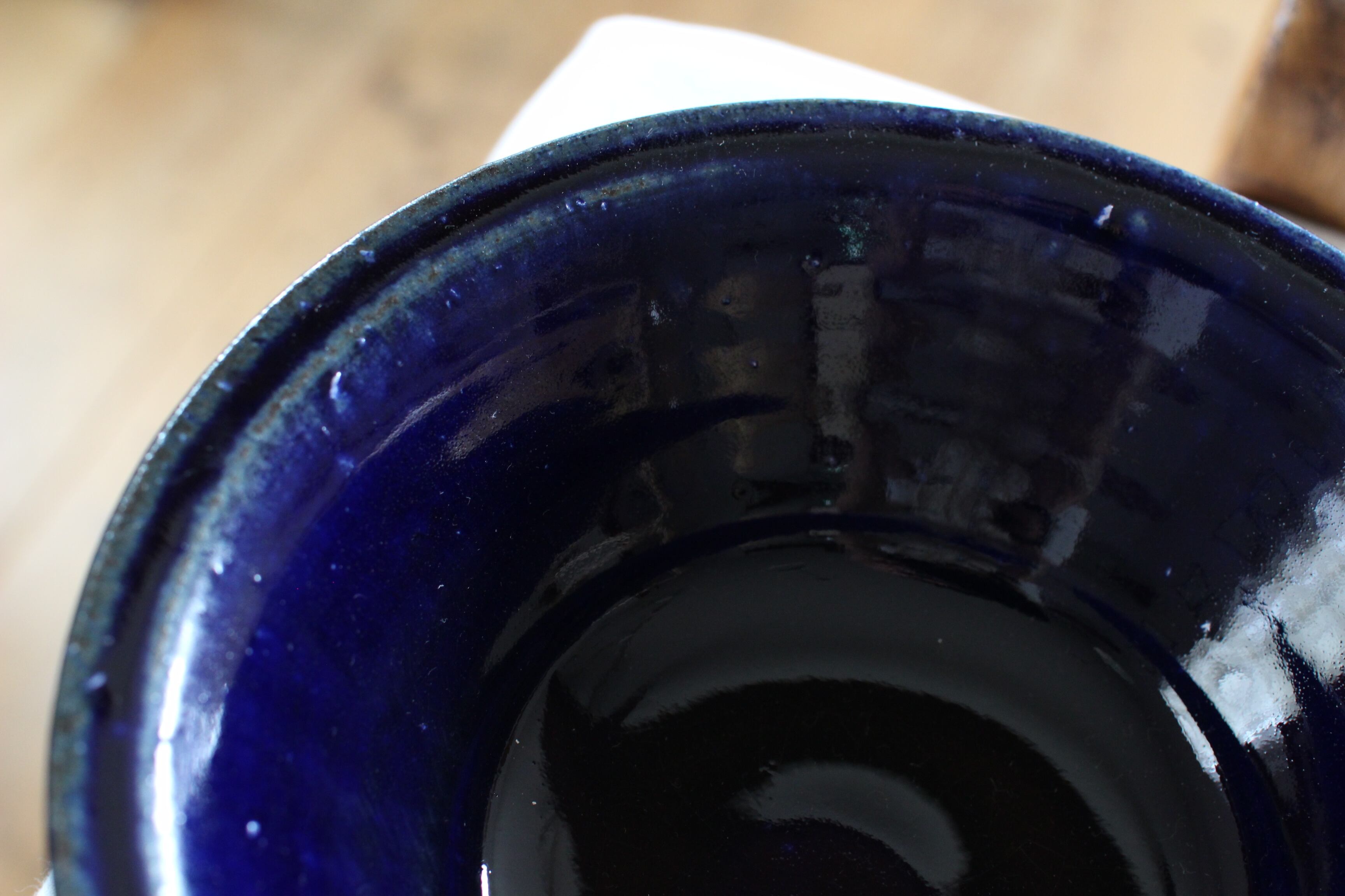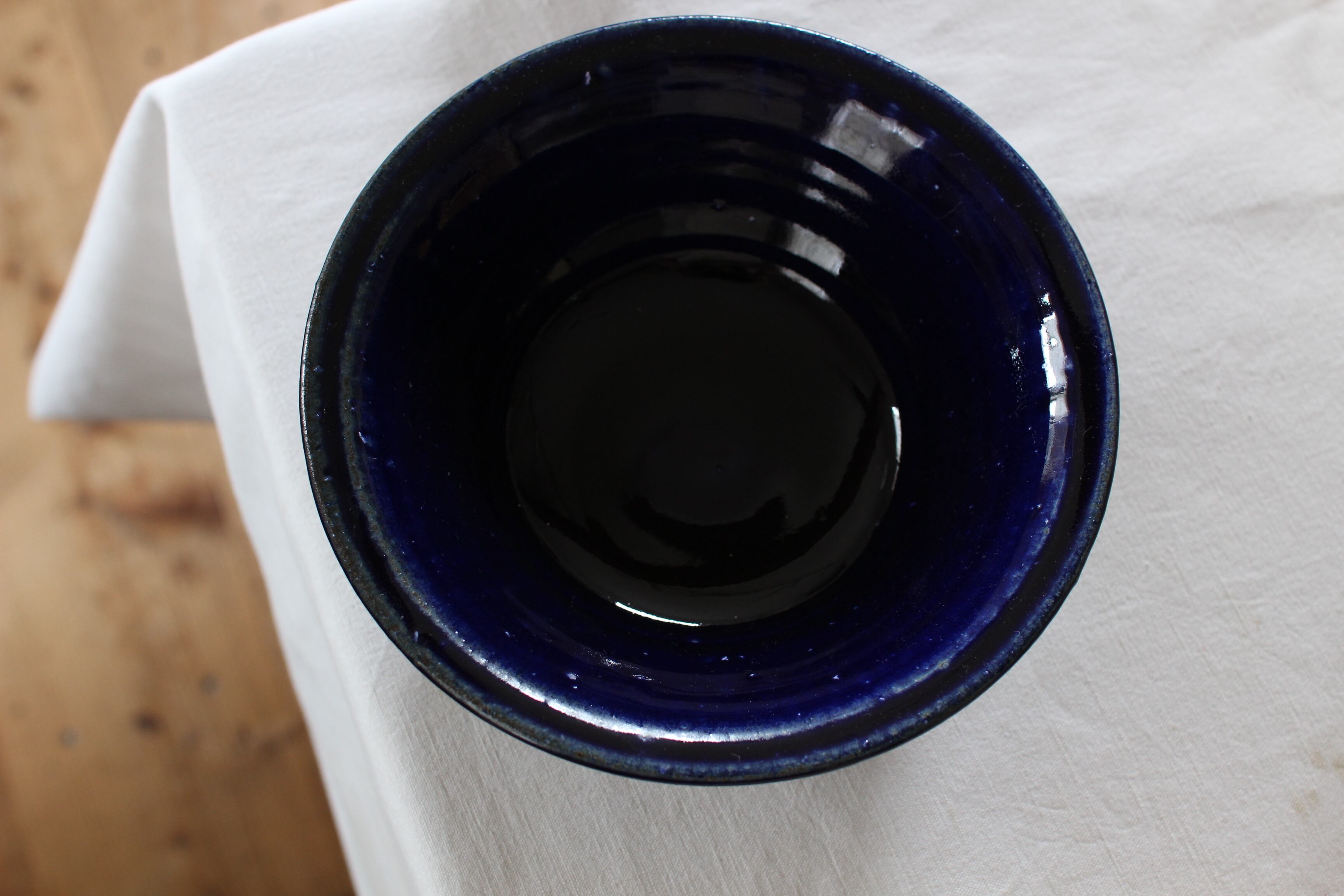 青を選んだのは海や宇宙のような青にひかれてとのこと。生み出された深いアジュール、碧色の器に心が鷲掴みにされます。