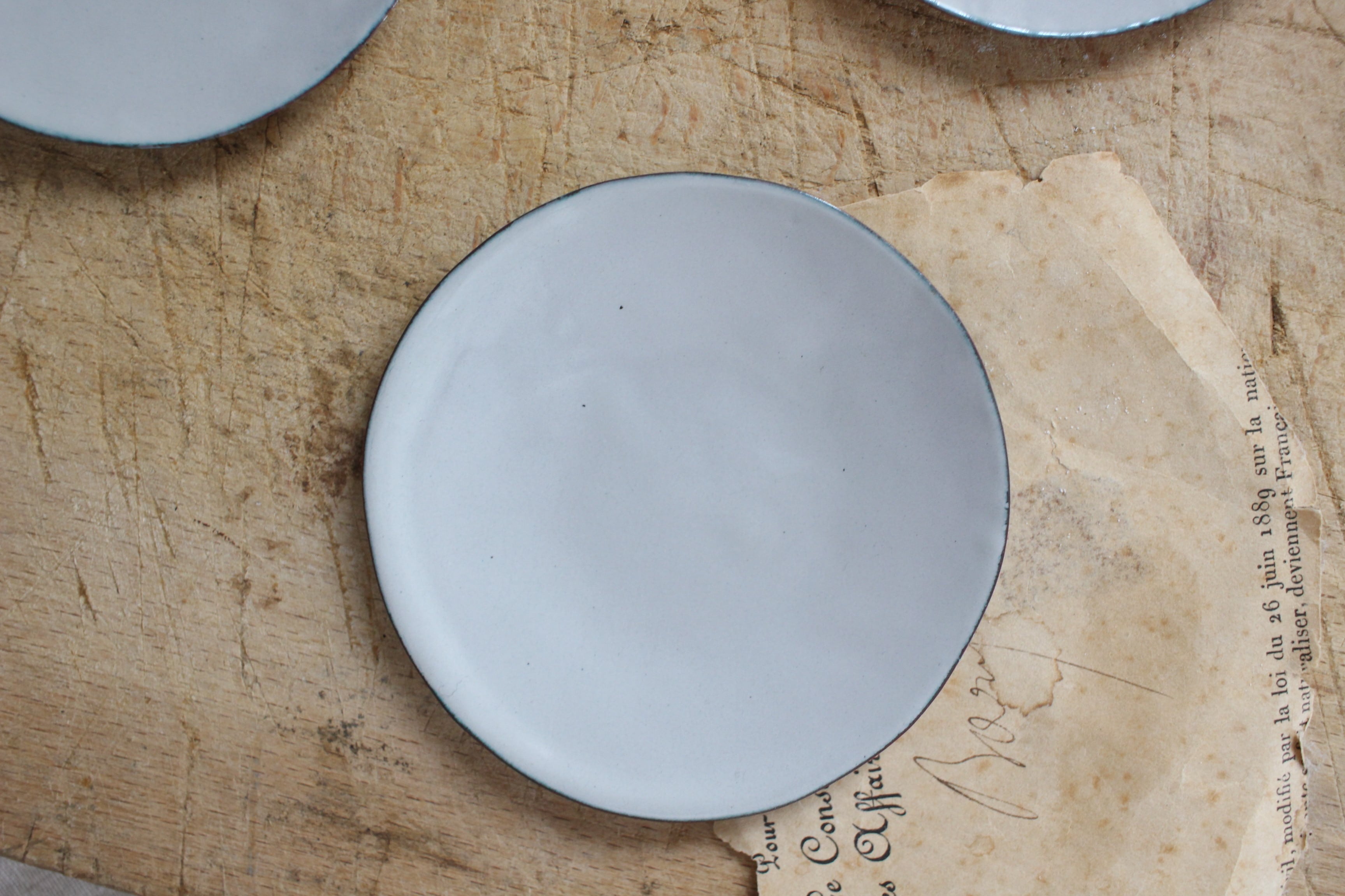 昔ながらの調理器具でも馴染み深いホーローですが、素地の銅からにじみ出るものなのかしっとりと柔らかで繊細な質感、色味が感じられます。
