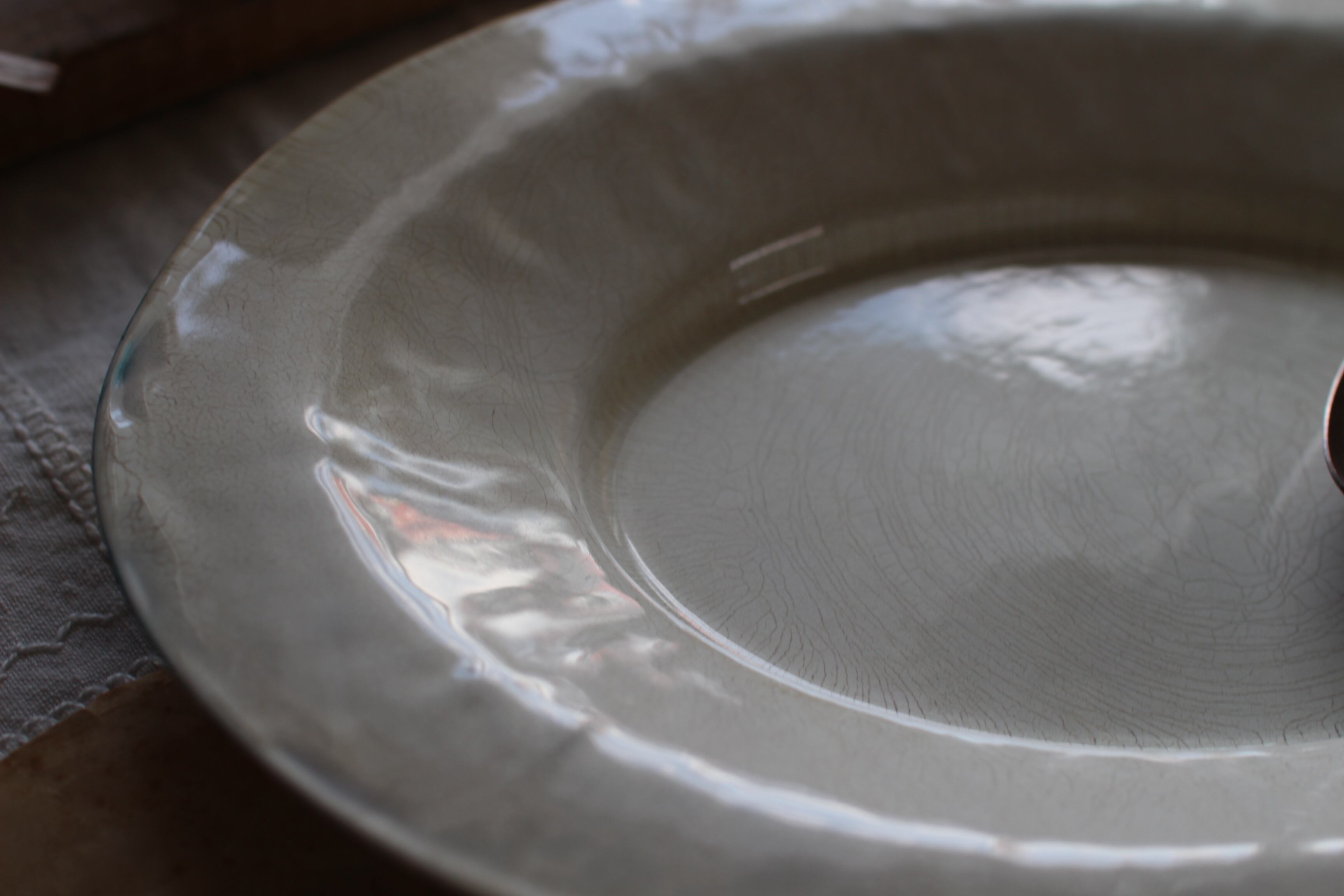 ○金属製のカトラリーで強く擦ったり当てたりされますと、金属の方が線上に器に付着することがあります。ご注意ください。