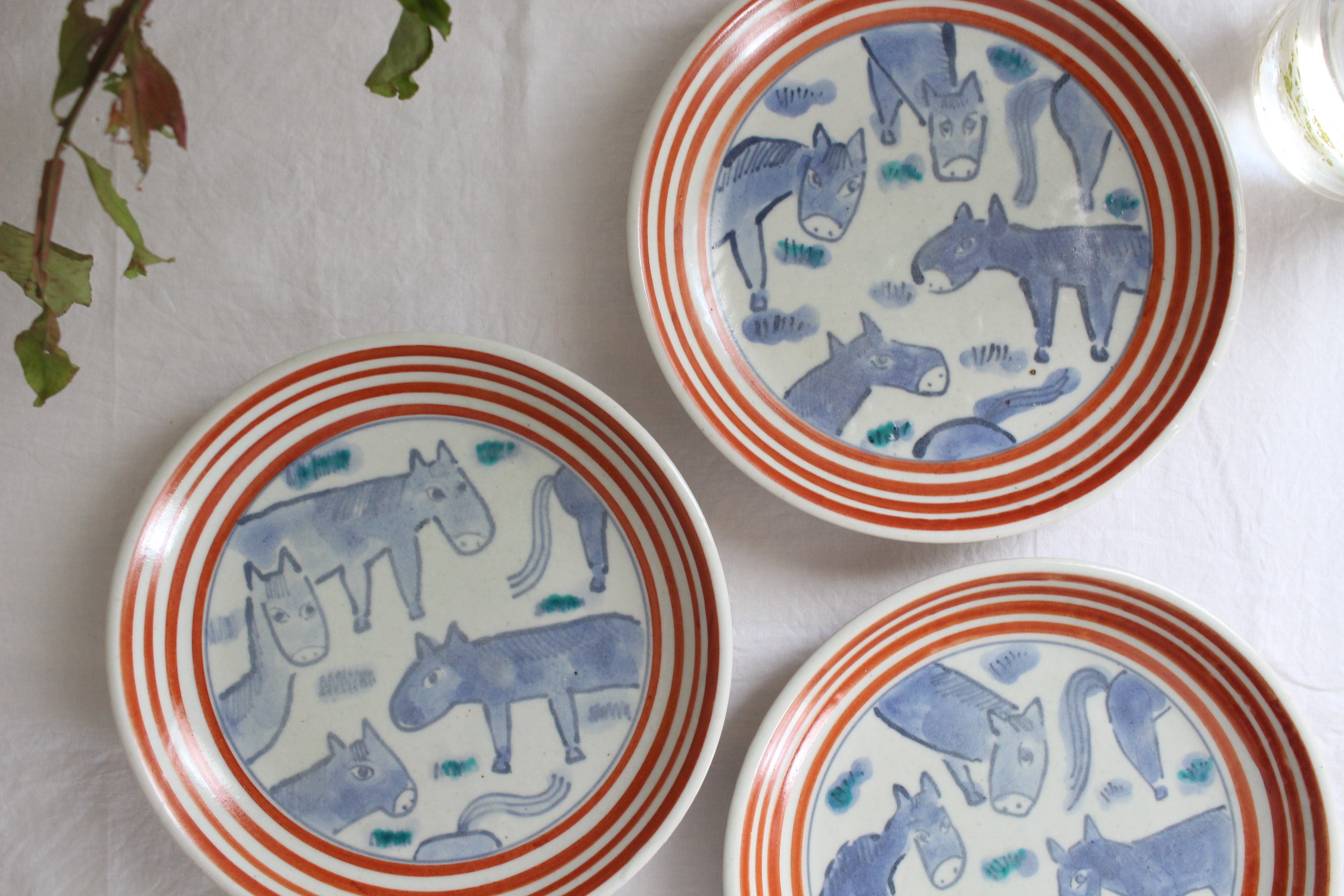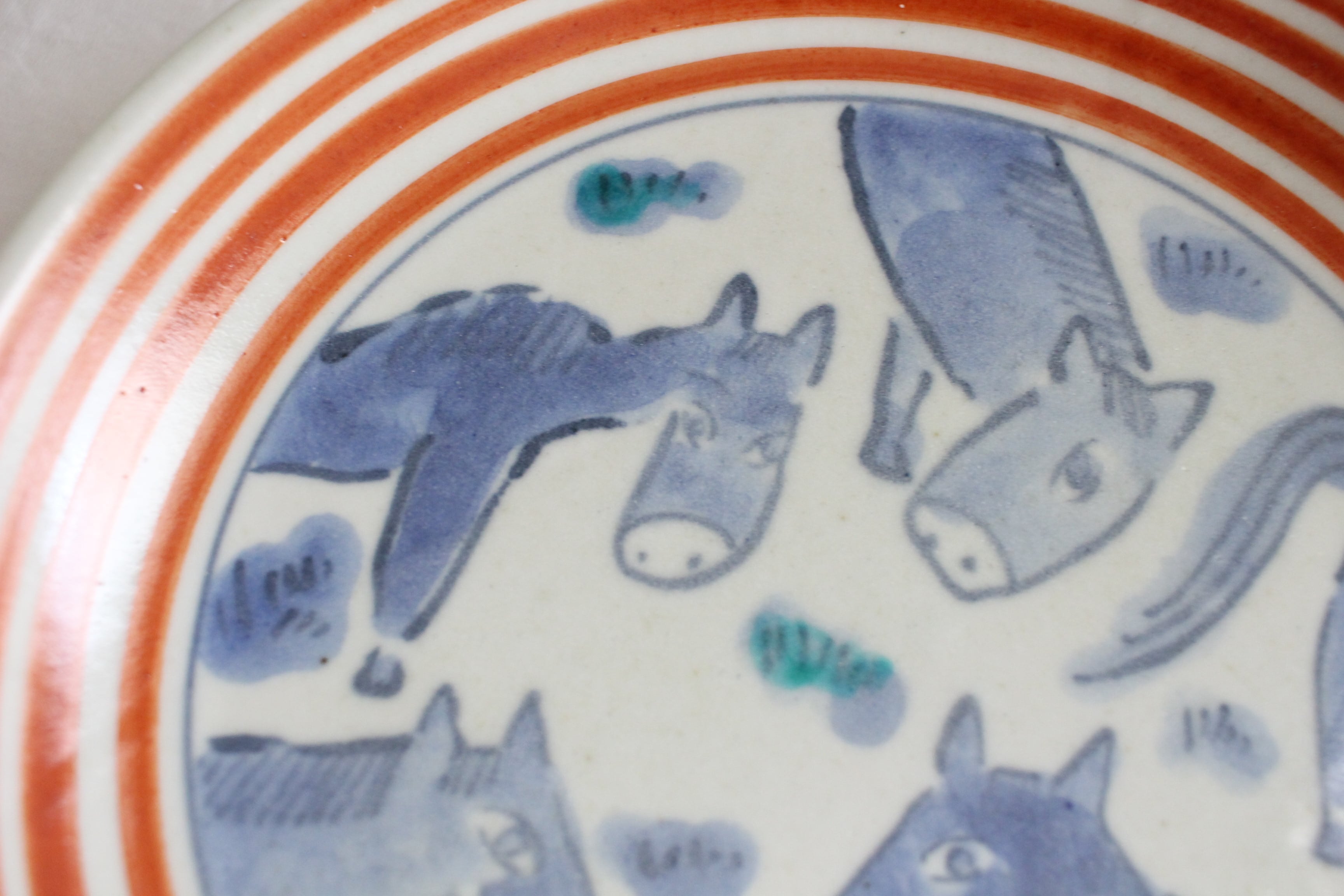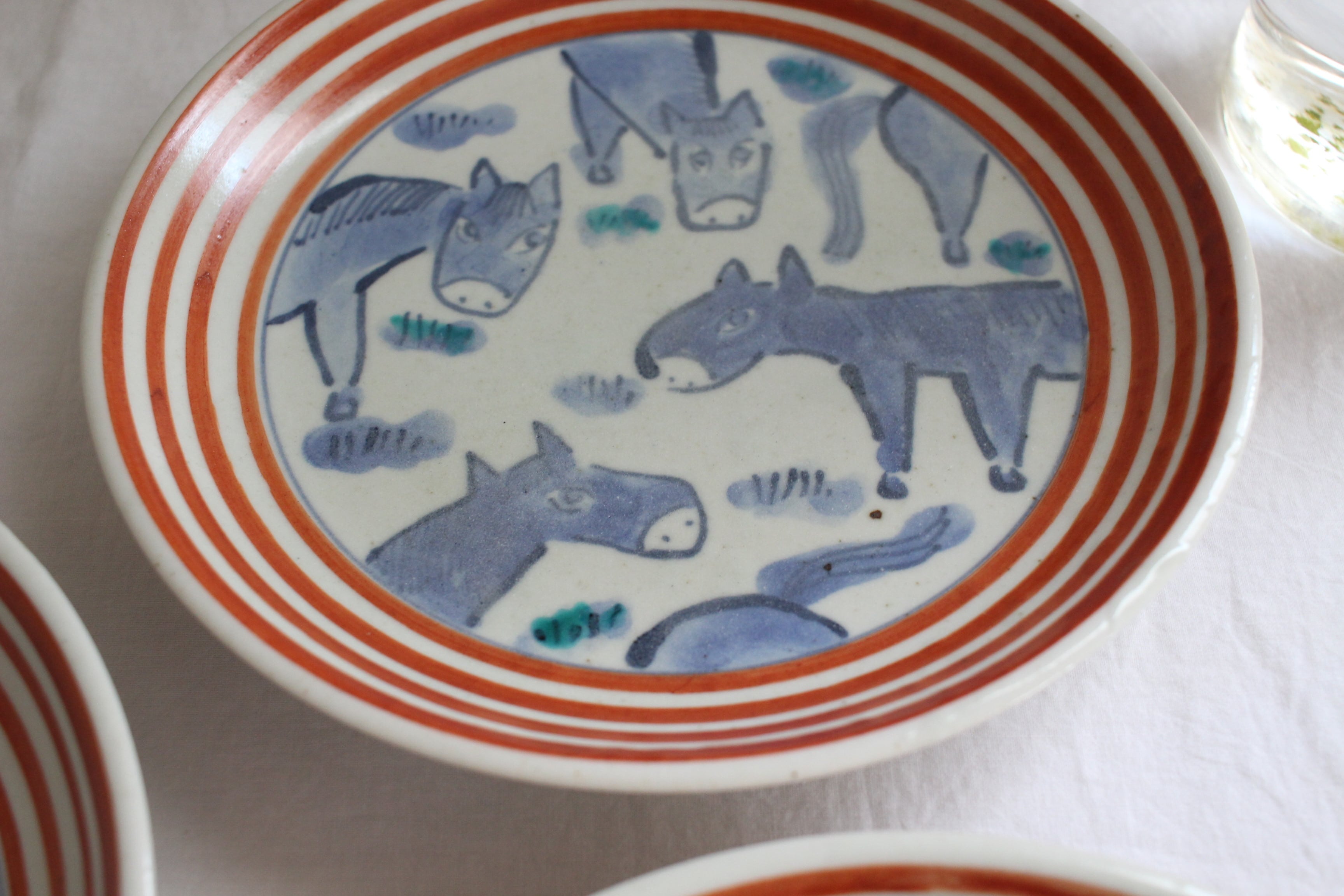 伝統的な色絵のものの他に、絵本の中から出てきたような動物たちが時に可愛らしく、時に個性的に抽象的に描かれたお皿やカップを作られます。