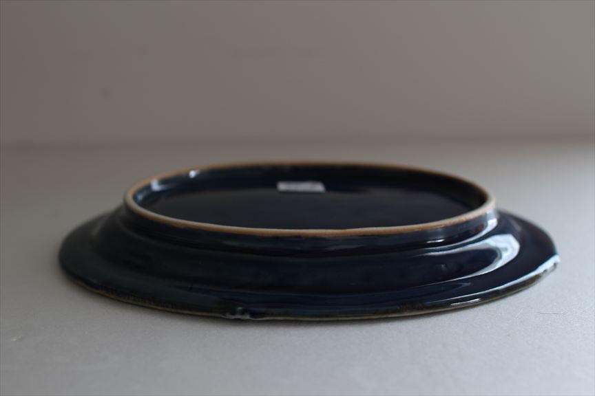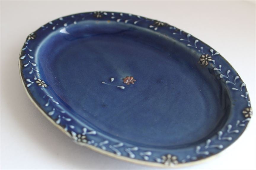 廣政毅|ルリ貼花繋ぎ楕円皿