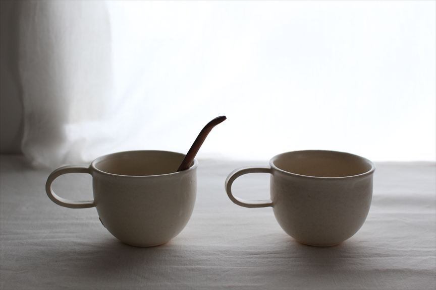 ふっくらとしたやわらかい雰囲気のお鍋やカップたち。