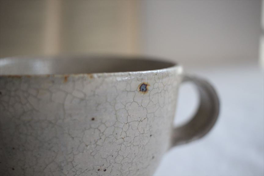 石ハゼ、鉄粉、ピンホール、貫入などが見られますが、荒々しい表情も魅力の一つです。原土に含まれる小石や鉄分なども精製しすぎることなく制作されており、それらの素材の持つ表情としてお楽しみください。