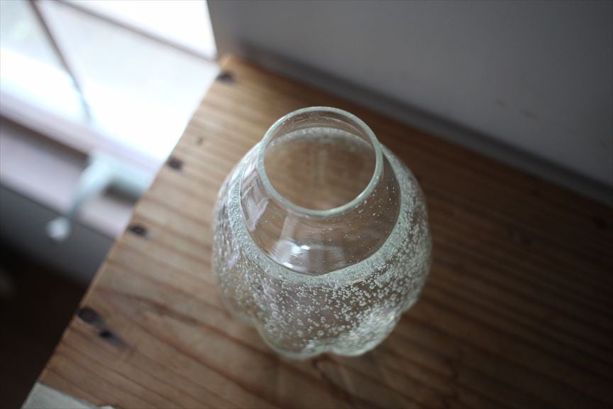 温かみのあるガラスの器。細かい気泡とアンティークのようなゆらぎに懐かしさを感じます。