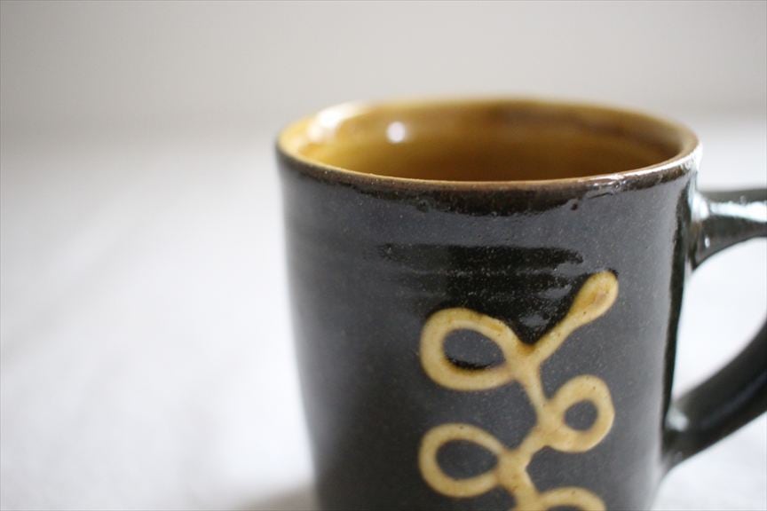 色鮮やかな生地にくねくねくるりんとスリップで描かれた線文様が踊る楽しい器たち。