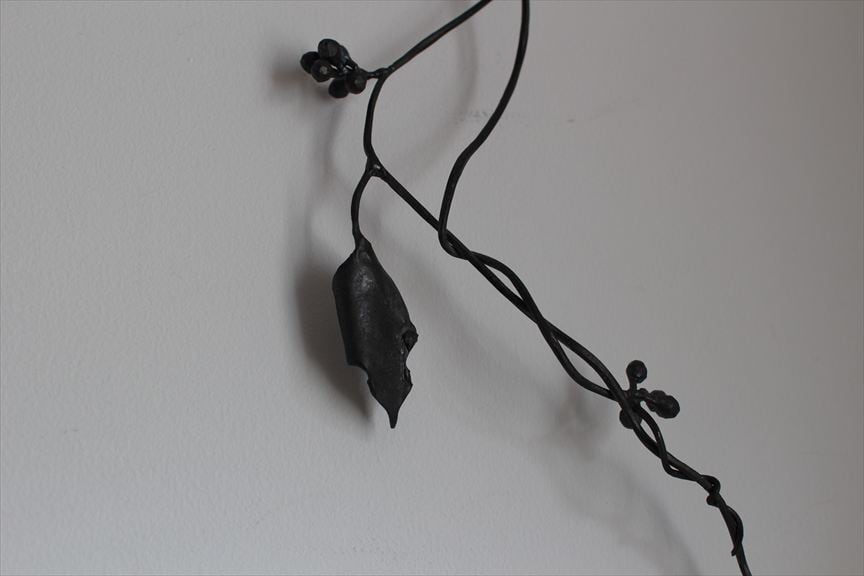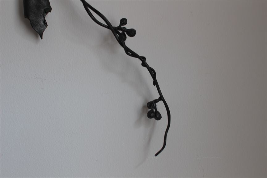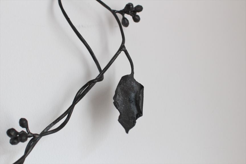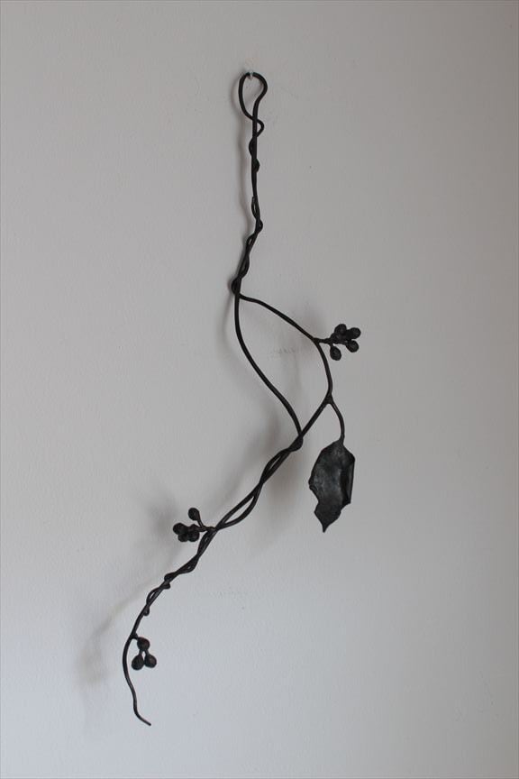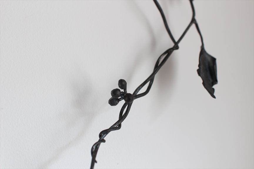 鉄で作られた大きなオブジェ、高く大きな枝を生けることのできる重い鉄の花器、一本の金属の棒をただ叩いて叩いて伸ばし広げ、カトラリーに仕上げたぬくもりのある素朴な作品など、