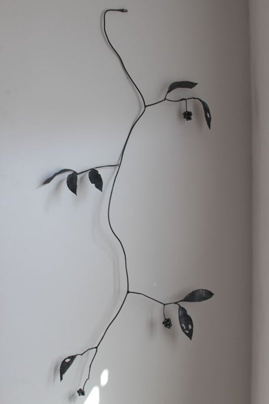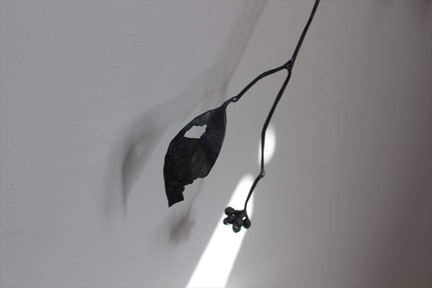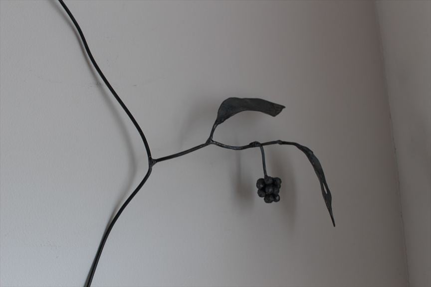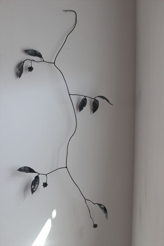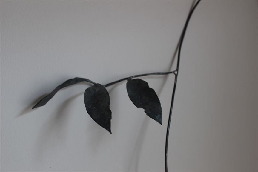 鉄で作られた大きなオブジェ、高く大きな枝を生けることのできる重い鉄の花器、一本の金属の棒をただ叩いて叩いて伸ばし広げ、カトラリーに仕上げたぬくもりのある素朴な作品など、