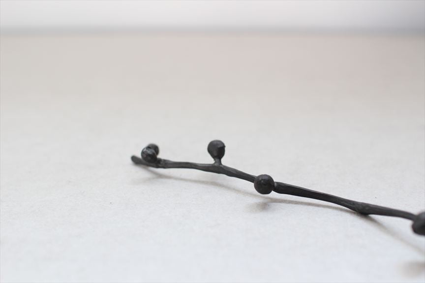 固く結んだ梅の蕾が今まさに膨らもうとする瞬間の命の息遣いを感じるオブジェ。