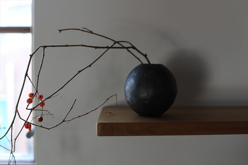 しっとりとした黒。光の当たる角度によって美しい光沢があらわれます。有機的な優しい表情。