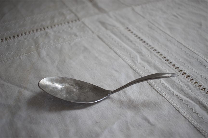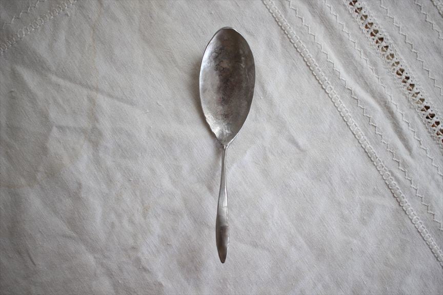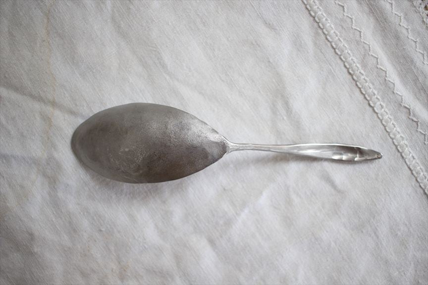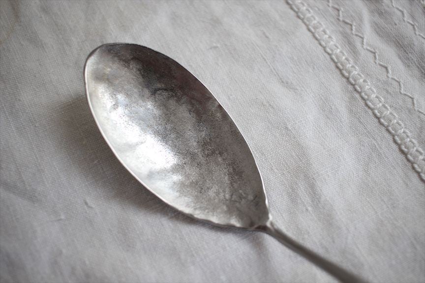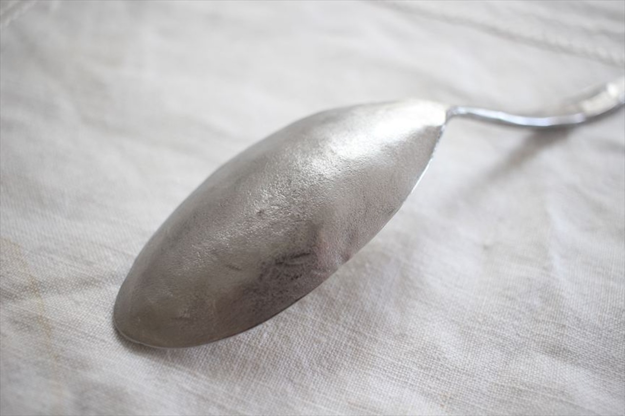 こちらのカトラリーは打ち出して作っている為、表面が凹凸しております、凹に錆が付着した場合は爪楊枝でこすってください。