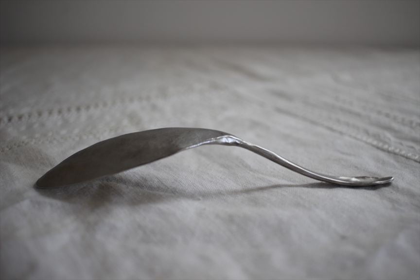 鉄で作られた大きなオブジェ、高く大きな枝を生けることのできる重い鉄の花器、一本の金属の棒をただ叩いて叩いて伸ばし広げ、カトラリーに仕上げたぬくもりのある素朴な作品など、