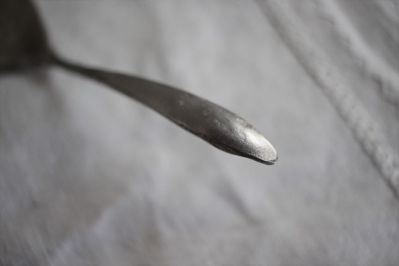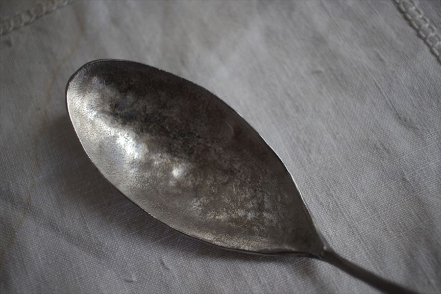 こちらのカトラリーは打ち出して作っている為、表面が凹凸しております、凹に錆が付着した場合は爪楊枝でこすってください。