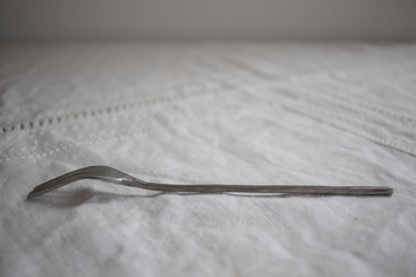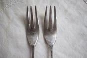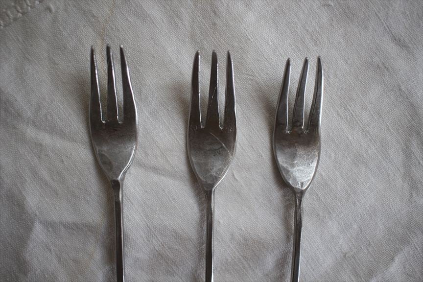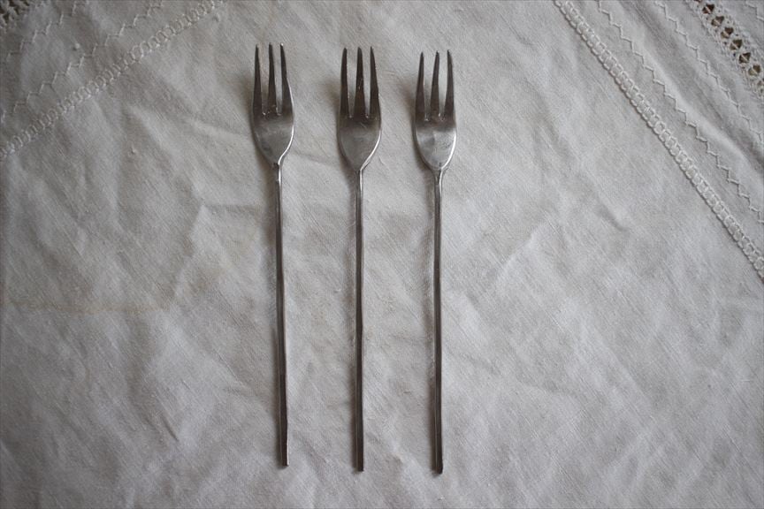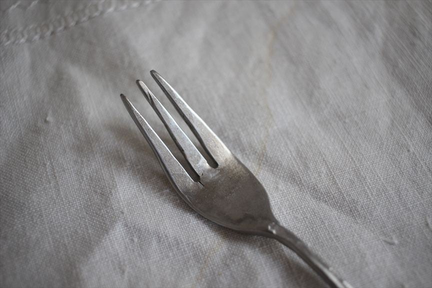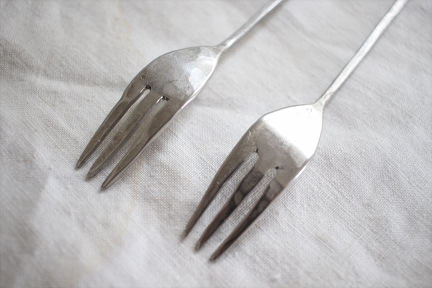 こちらのカトラリーは打ち出して作っている為、表面が凹凸しております、凹に錆が付着した場合は爪楊枝でこすってください。