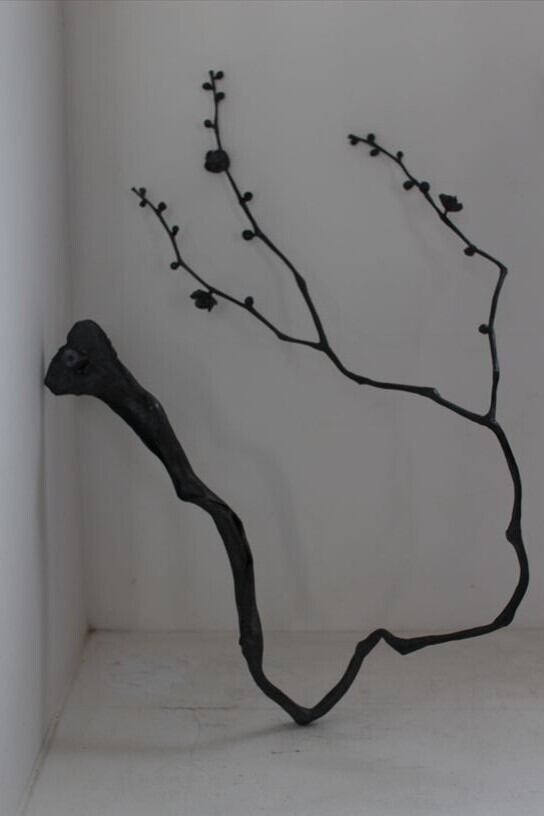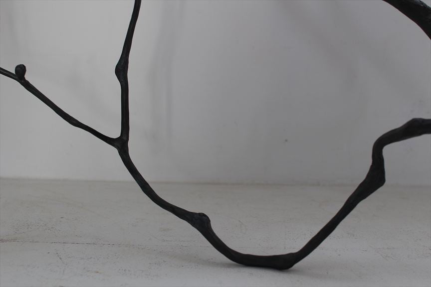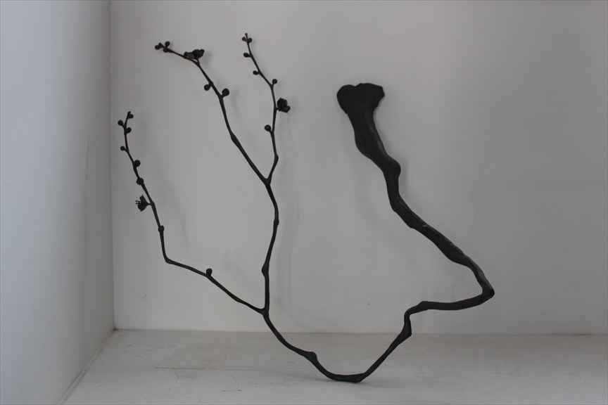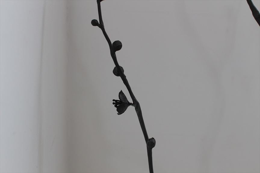 鉄で作られた大きなオブジェ、高く大きな枝を生けることのできる重い鉄の花器、一本の金属の棒をただ叩いて叩いて伸ばし広げ、カトラリーに仕上げたぬくもりのある素朴な作品など、