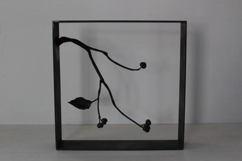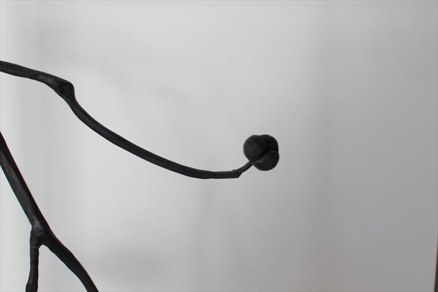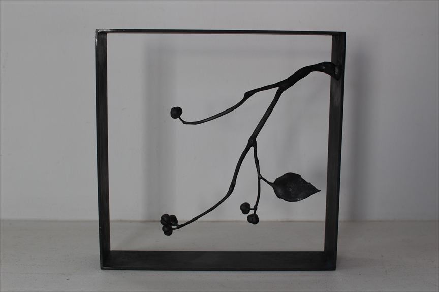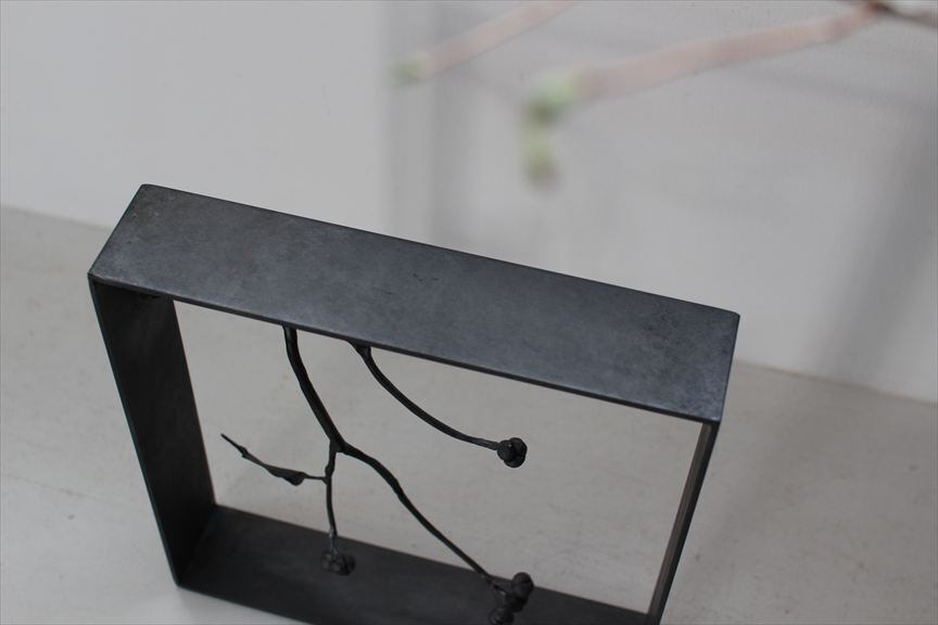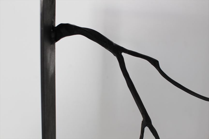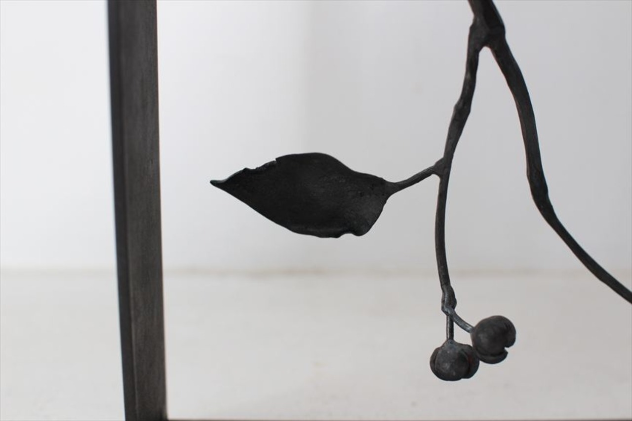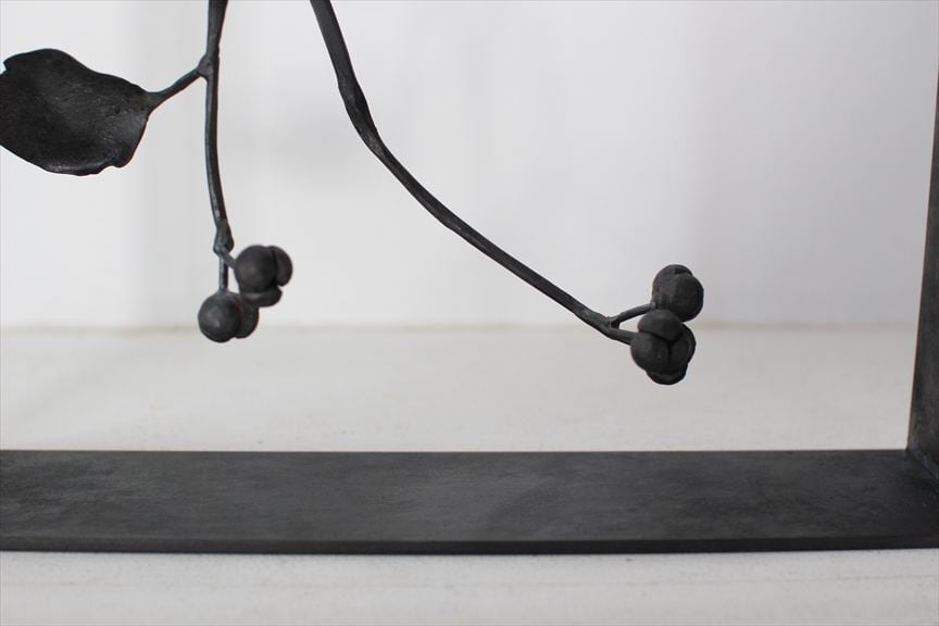 鉄で作られた大きなオブジェ、高く大きな枝を生けることのできる重い鉄の花器、一本の金属の棒をただ叩いて叩いて伸ばし広げ、カトラリーに仕上げたぬくもりのある素朴な作品など、