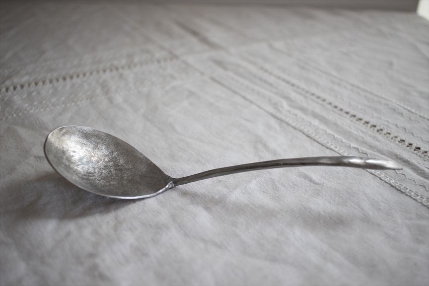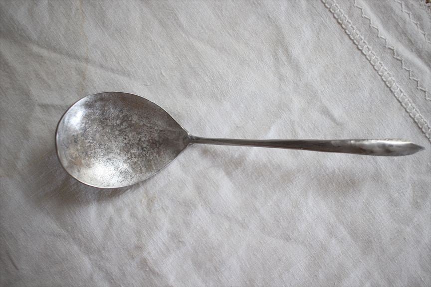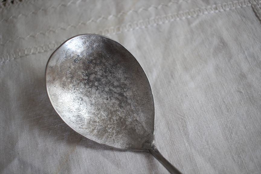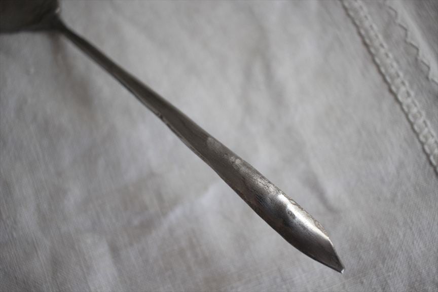 こちらのカトラリーは打ち出して作っている為、表面が凹凸しております、凹に錆が付着した場合は爪楊枝でこすってください。