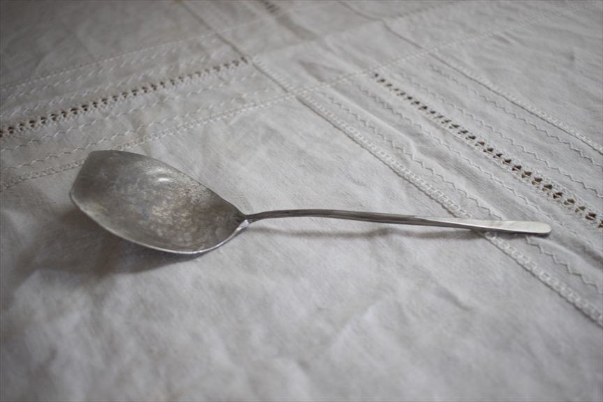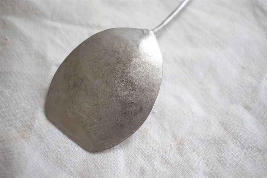 こちらのカトラリーは打ち出して作っている為、表面が凹凸しております、凹に錆が付着した場合は爪楊枝でこすってください。