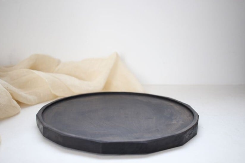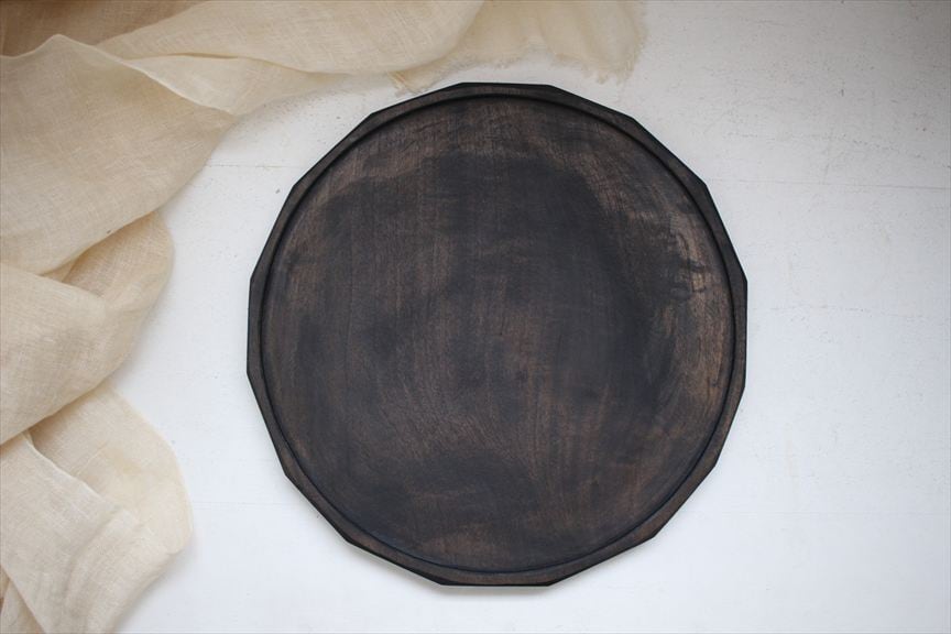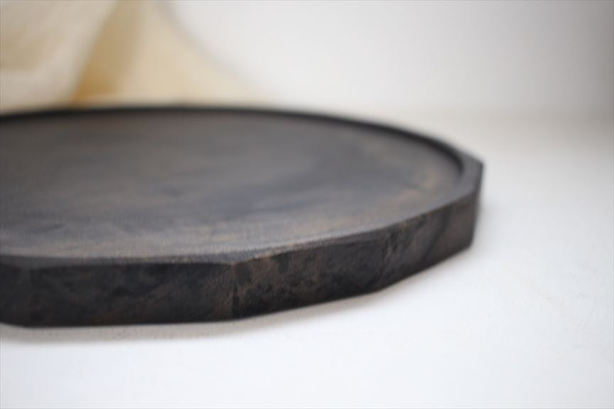 木の持つ粗野で豊かで自然な表情を鉄媒染、黒漆で包み込み、静かで美しい作品に仕上げています。人の呼吸に沿うような落ち着いた佇まい。