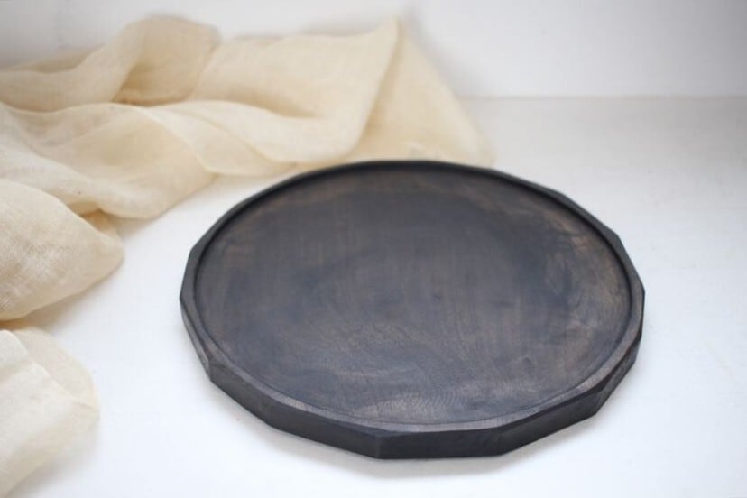 徒爾|くりぬき浅盆 9寸 サクラ 黒漆 (国産/松煙)