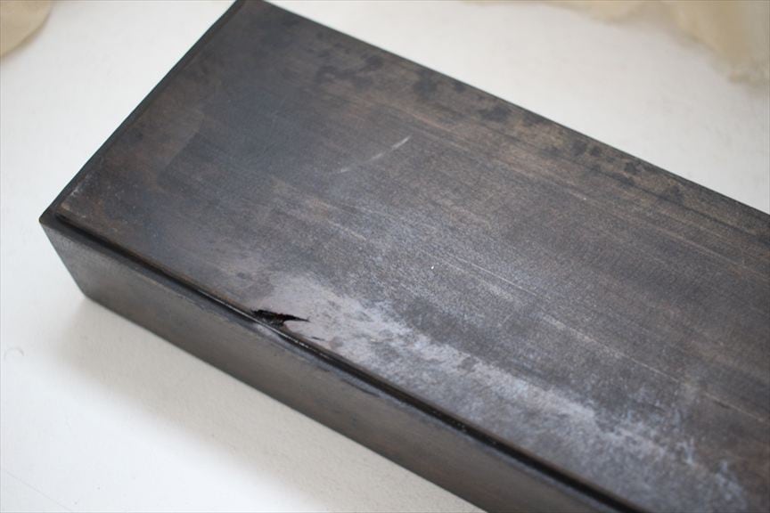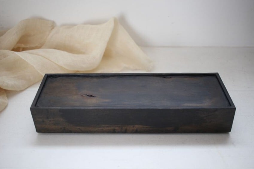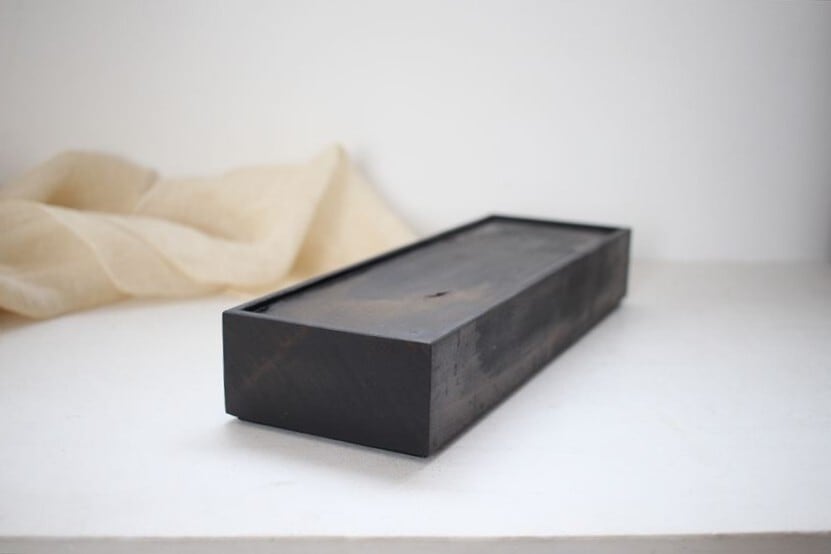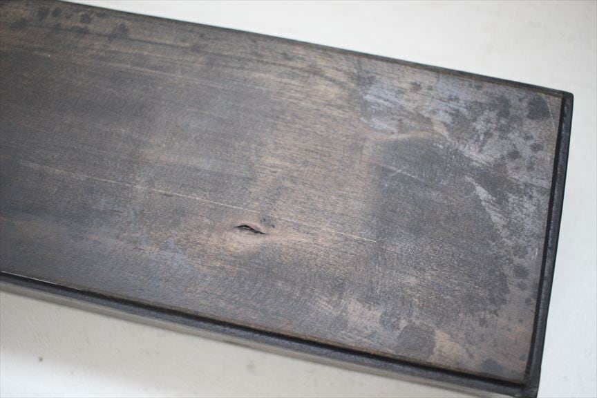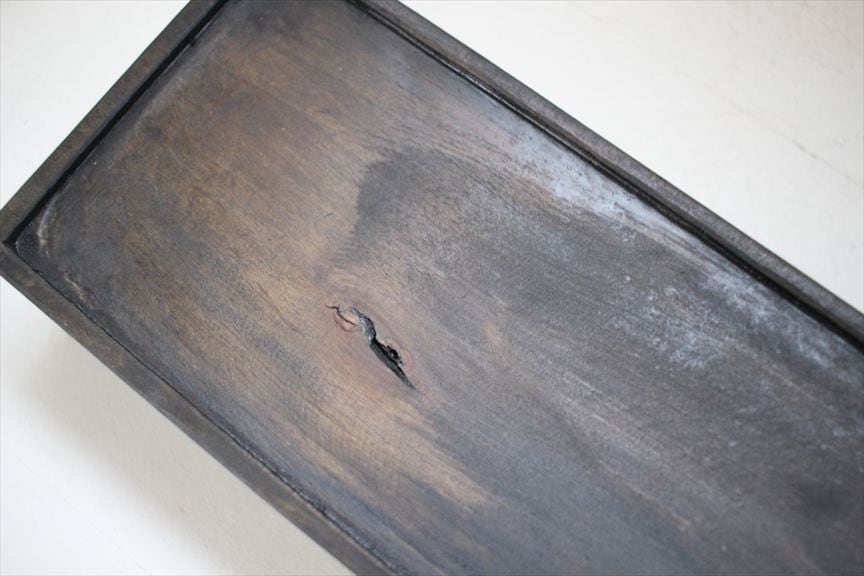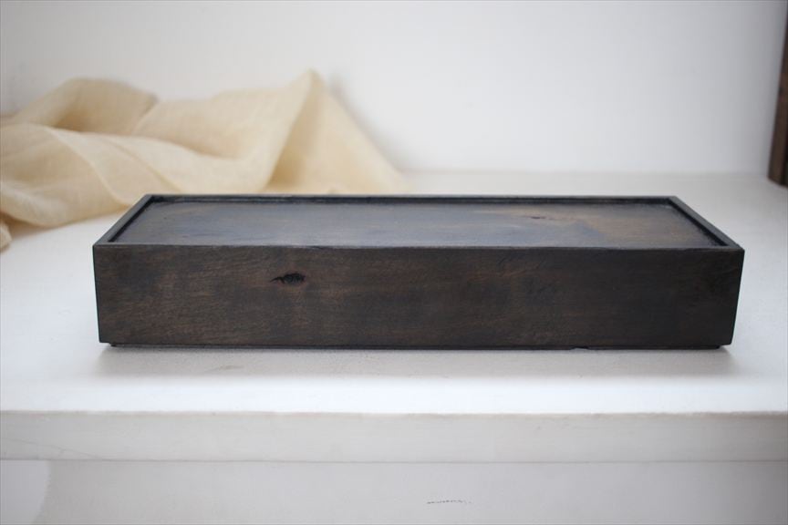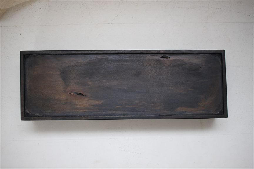 木の持つ粗野で豊かで自然な表情を鉄媒染、黒漆で包み込み、静かで美しい作品に仕上げています。人の呼吸に沿うような落ち着いた佇まい。