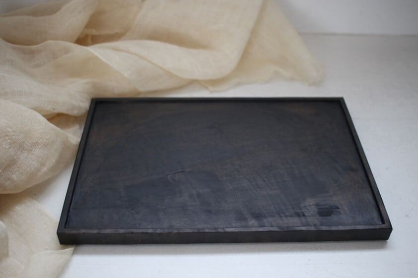 徒爾|角長トレー サクラ 黒漆(国産/松煙)