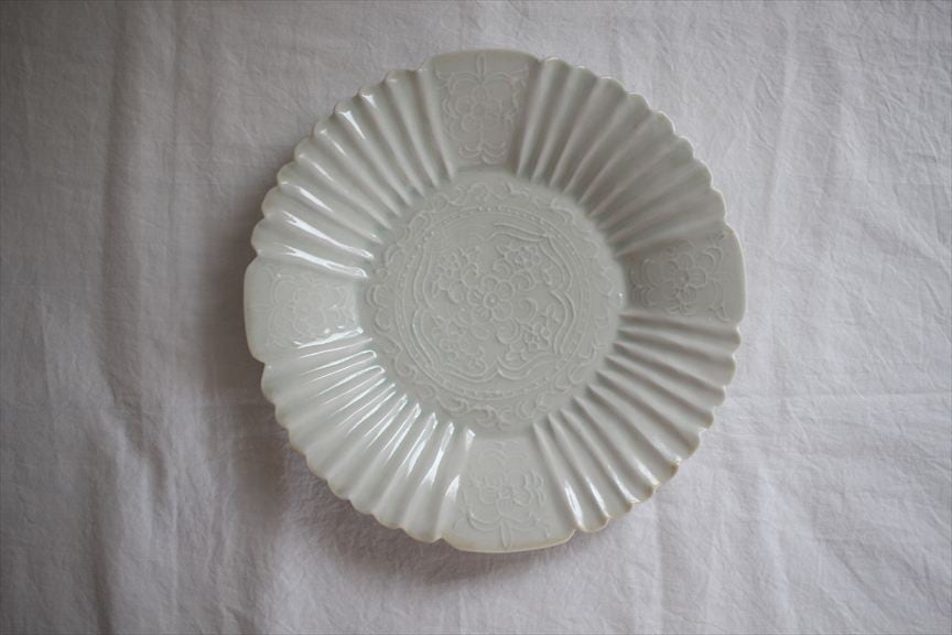jiucasca 前田麻美|灰青釉輪花七寸皿