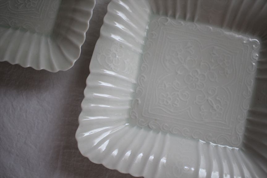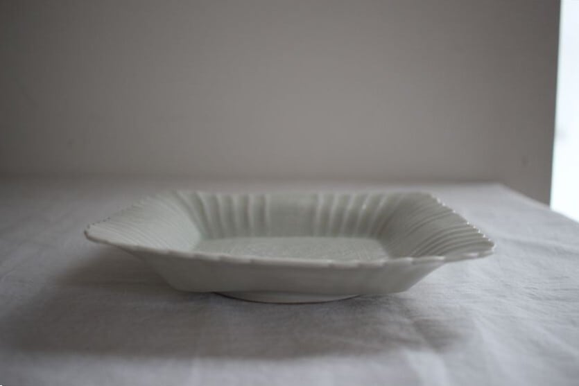 jiucasca 前田麻美|灰青釉輪花角大皿