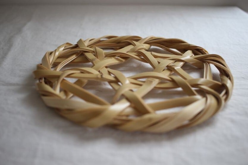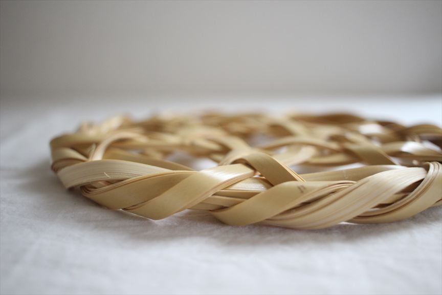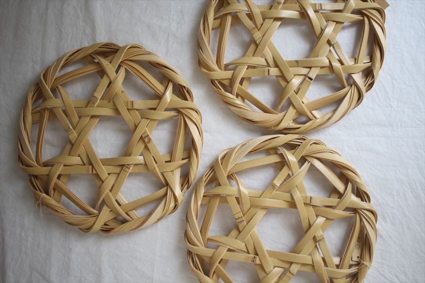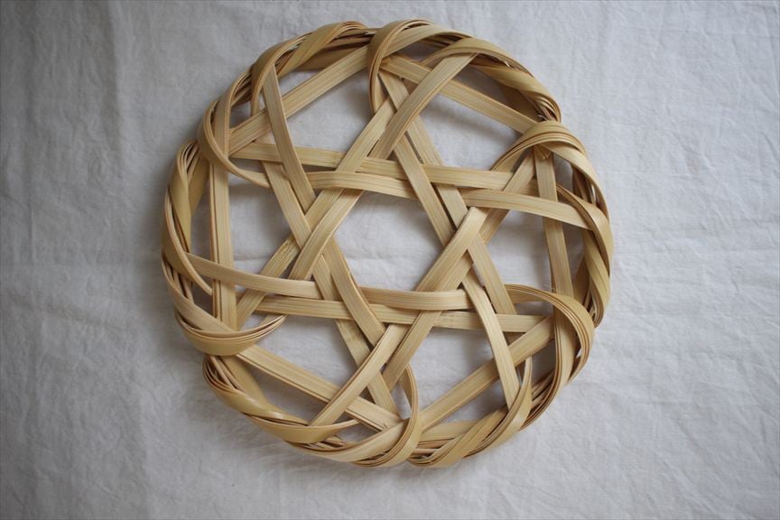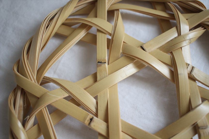細い竹を手で編んで、美しい模様を浮かび上がらせた作品は、実用性と芸術性を併せ持ちます。
