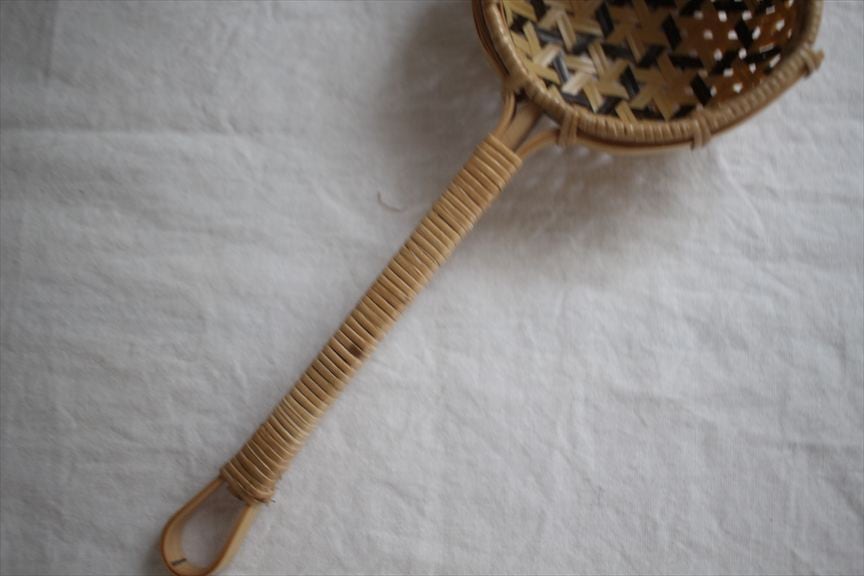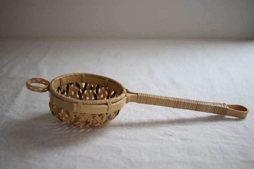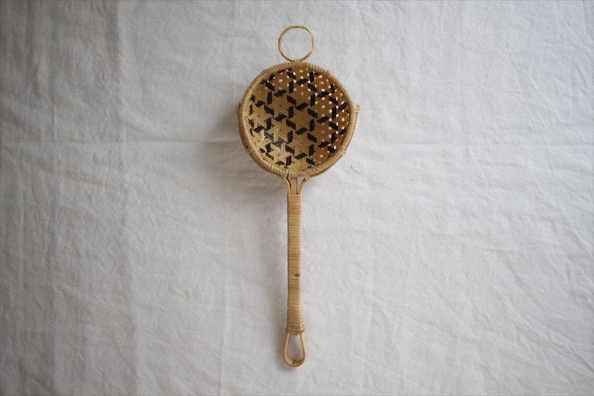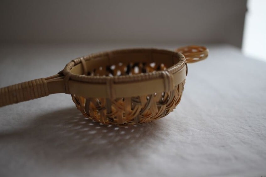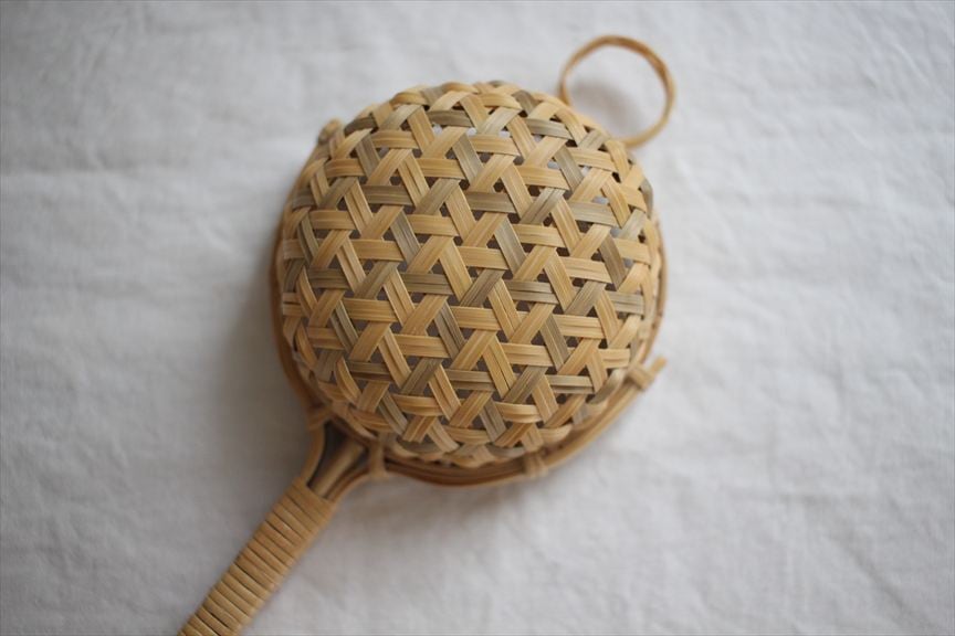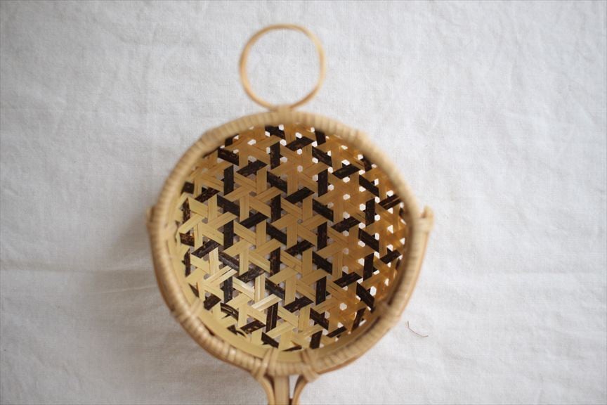 細い竹を手で編んで、美しい模様を浮かび上がらせた作品は、実用性と芸術性を併せ持ちます。