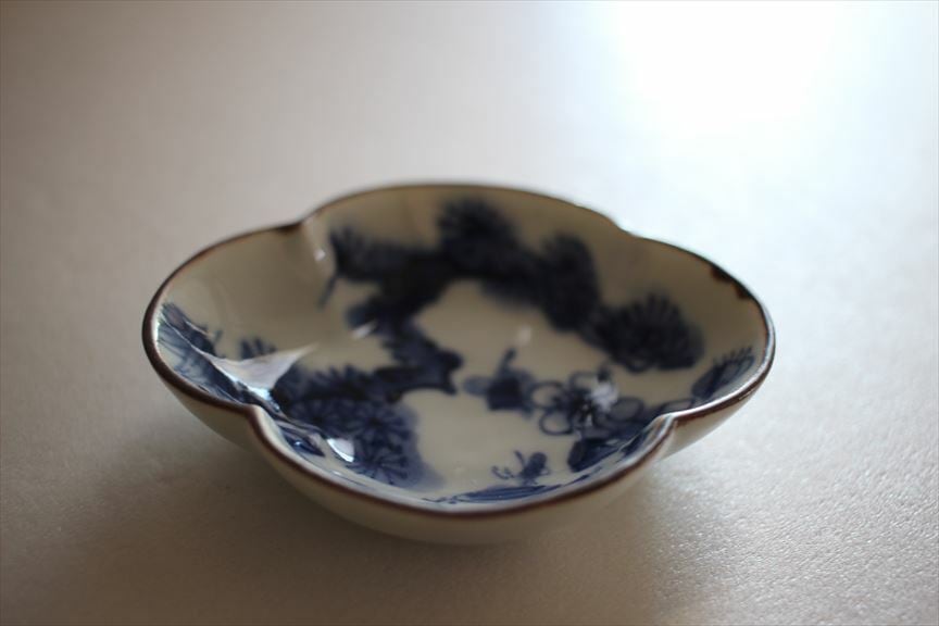 松竹梅のおめでたい絵柄がこの小さな豆皿の中にぎゅうっと描かれています。