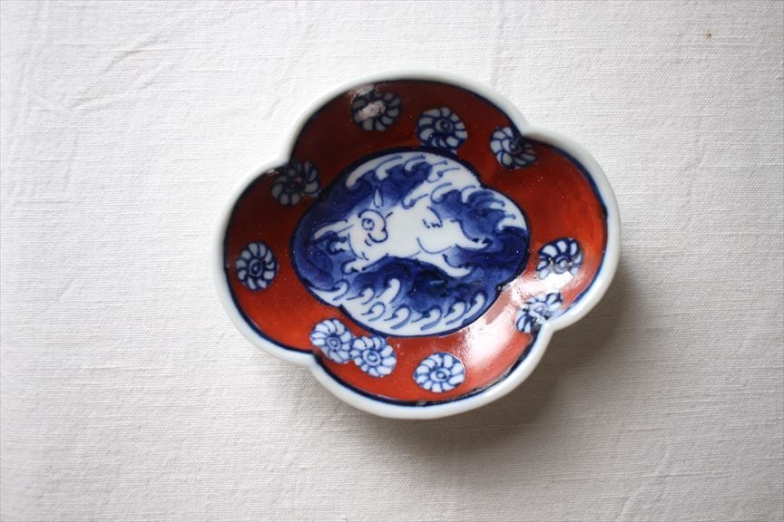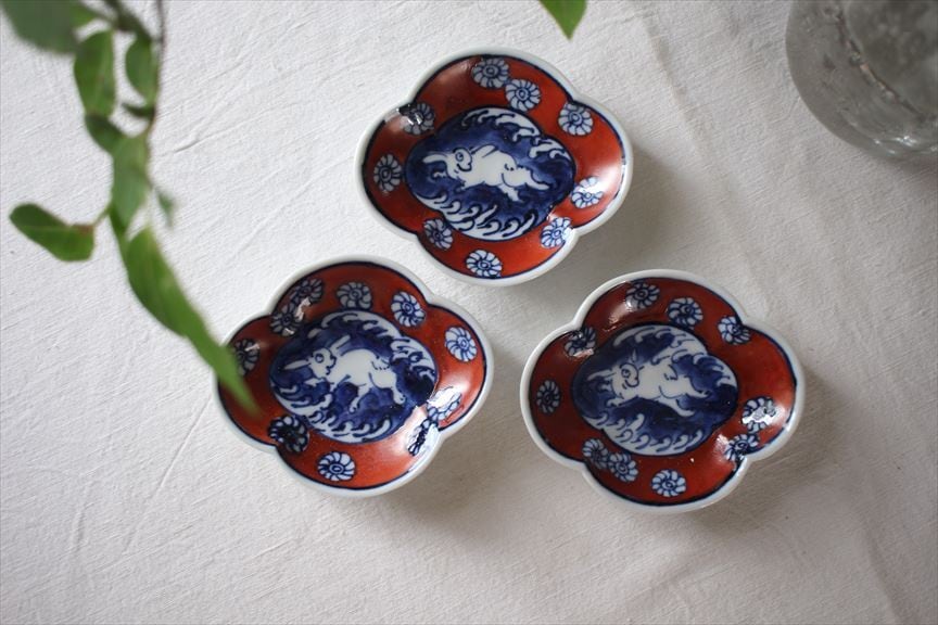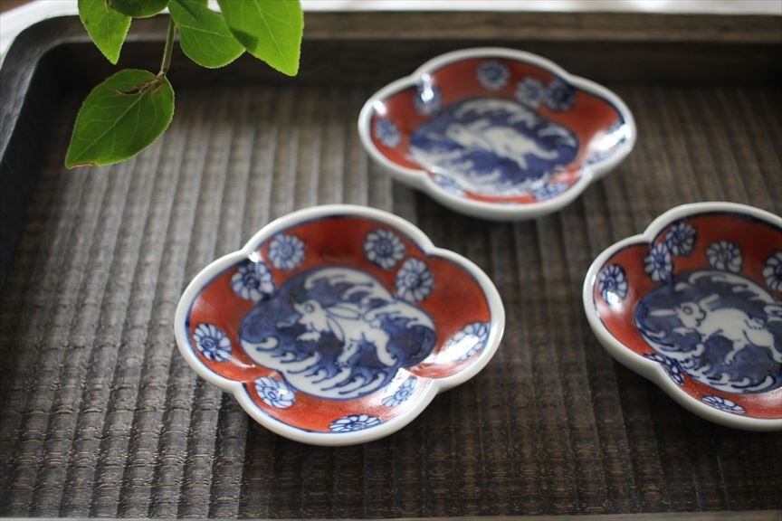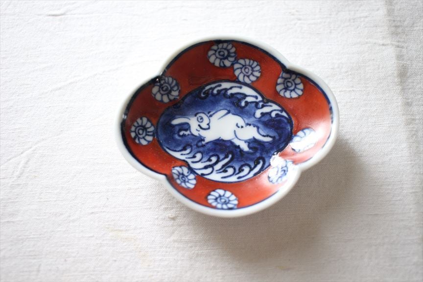 萠窯|木瓜豆皿(赤絵うさぎ)