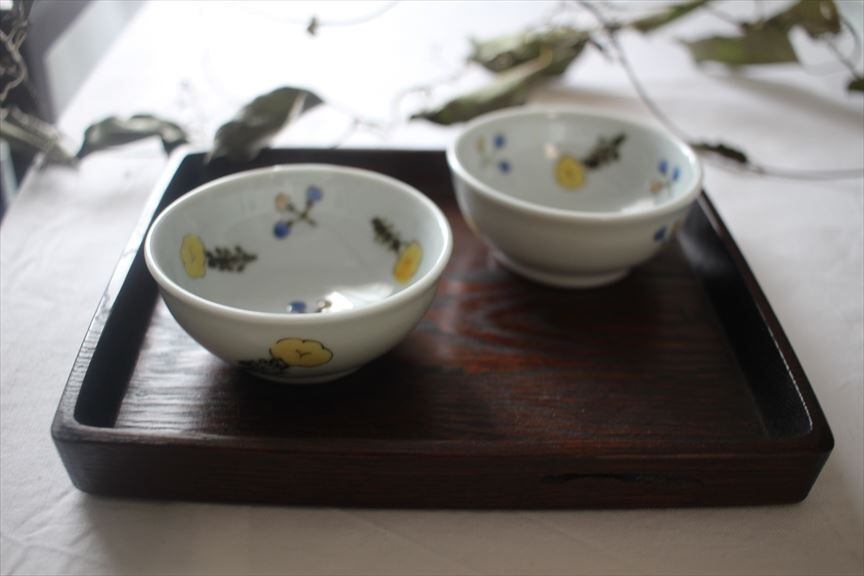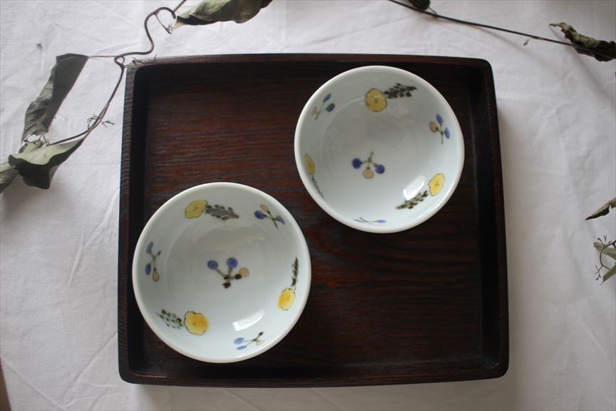 清水なお子|色絵 (鉄)草花散らし豆鉢