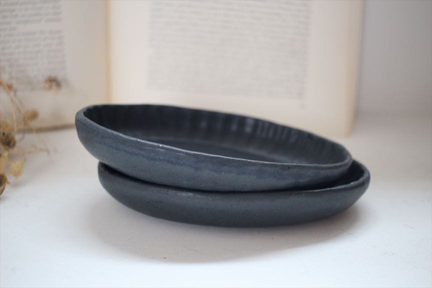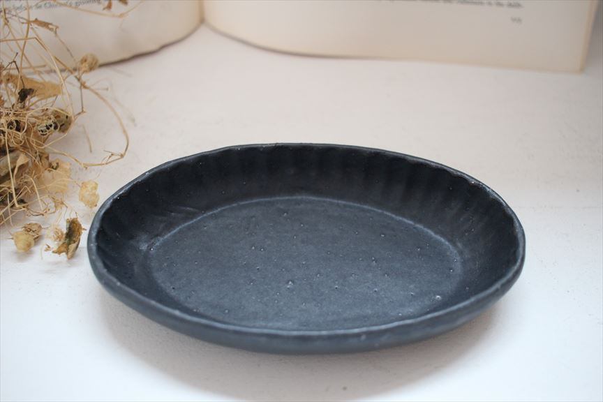 リムが立ち上がった、柔らかな表情のオーバル皿です。