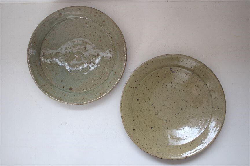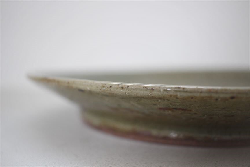 落ち着きのある奥深い薄緑。シンプルで飾らない素朴な雰囲気ですが、光沢があって重厚な存在感のある8寸皿です。