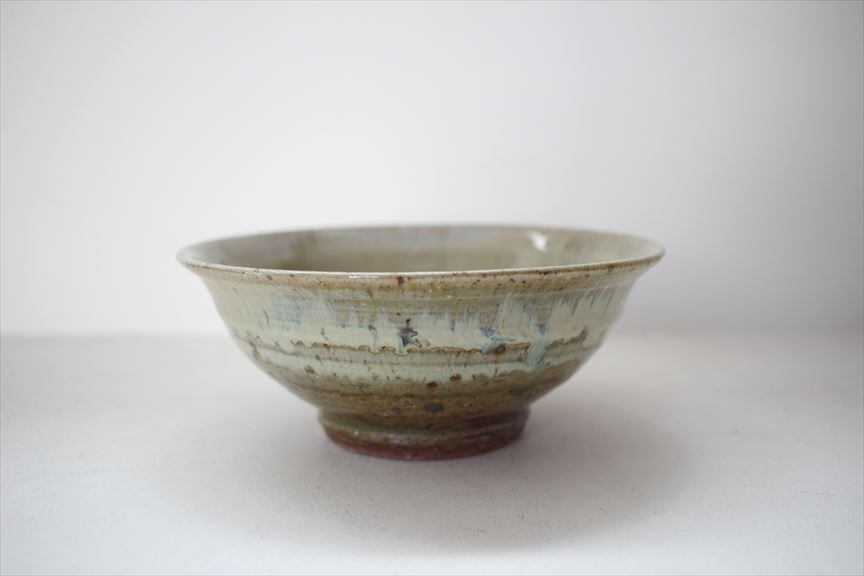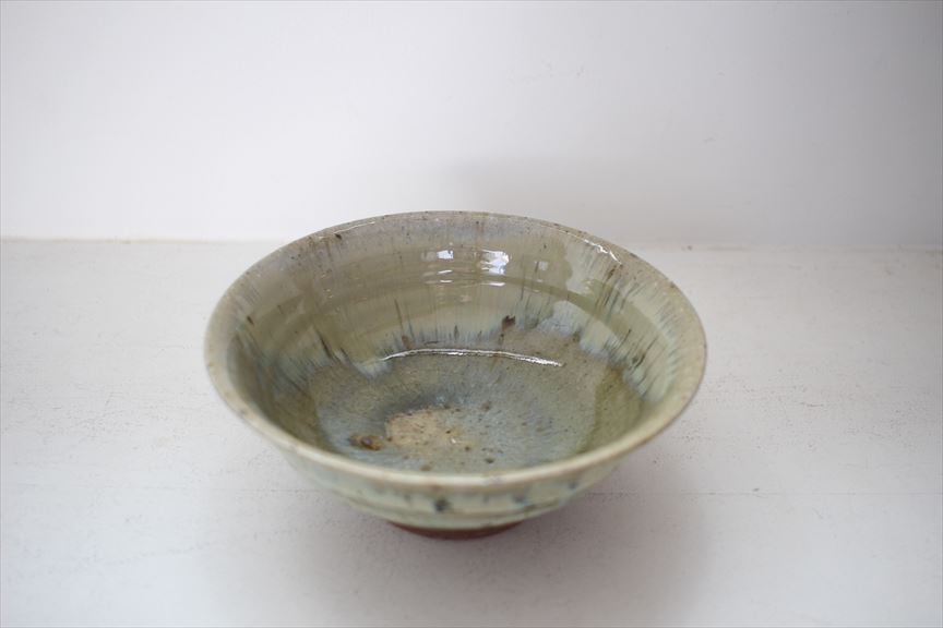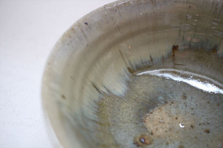 乳白釉の流れ、結晶、内側も外側もとても個性的な味わい深い鉢です。