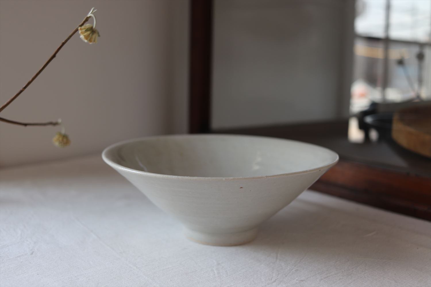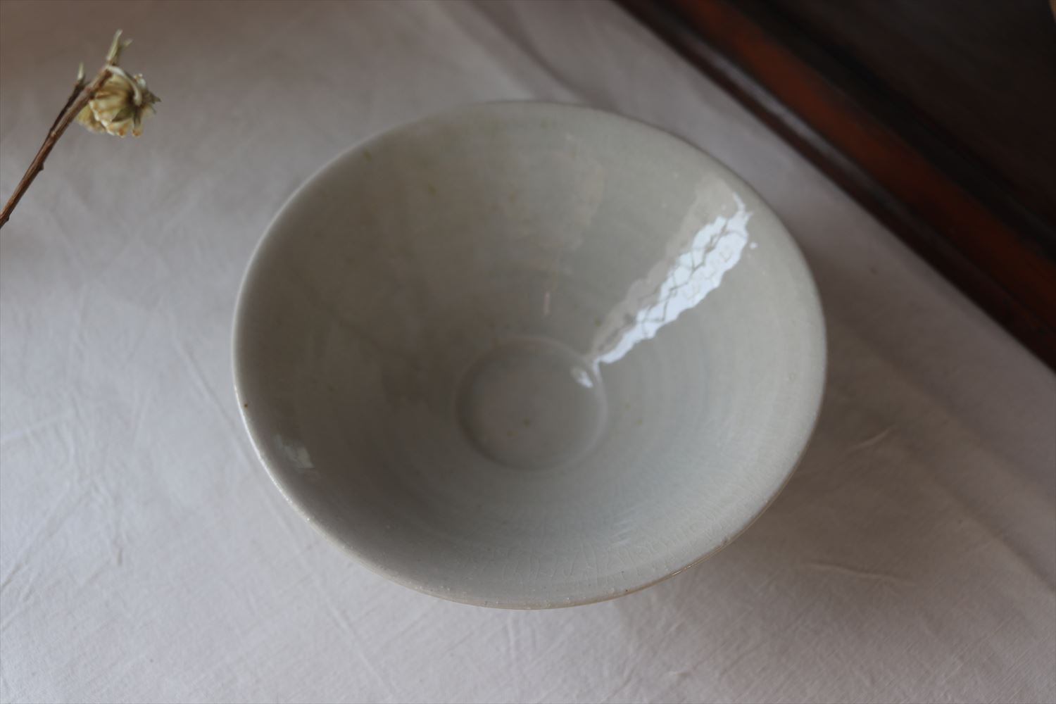 サイドからの形も美しく、柞灰釉の白は、白色と表現するべきか、奥ゆかしく柔らかく、深く上品な表情です。