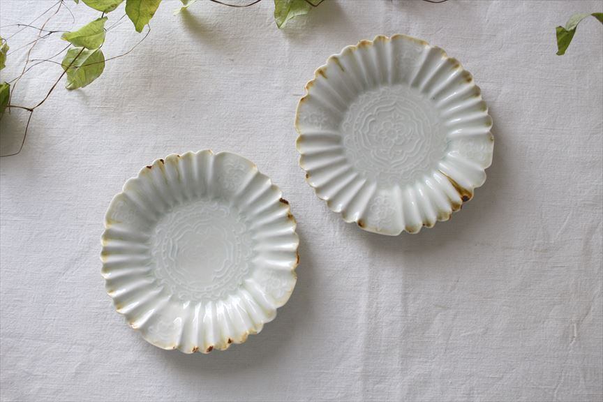 滴る水滴のようなイッチン模様やうつわを縁取る細かい型押し模様が魅力。