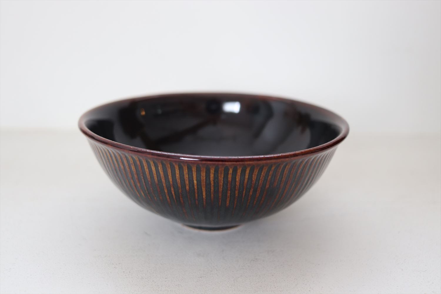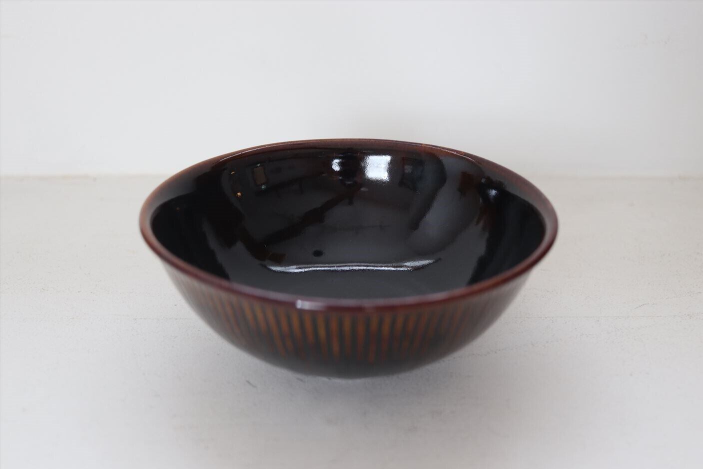 光沢のある美しい飴色です。高さもあるのでいろいろに使いやすい鉢です。