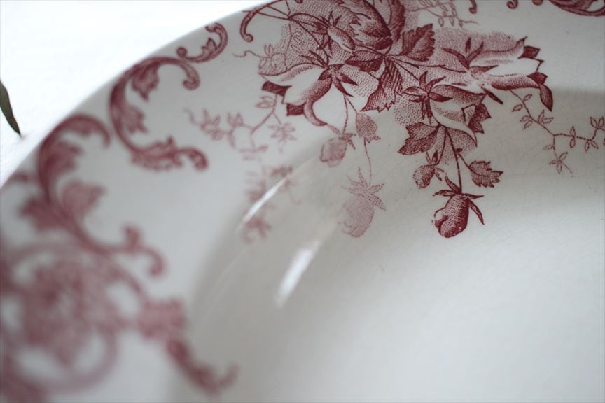 アンティーク|St.Amand & Hamage Nord CAMPANULE 赤花 深皿