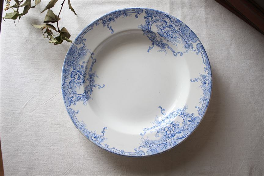アンティーク|dauphine BFK BOCH FRERES KERAMIS つる花 青深皿ⓐ