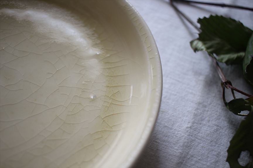 お使いいただくうちに、表面の貫入へ茶渋等が徐々に染み込んで色が入っていくことがございます。