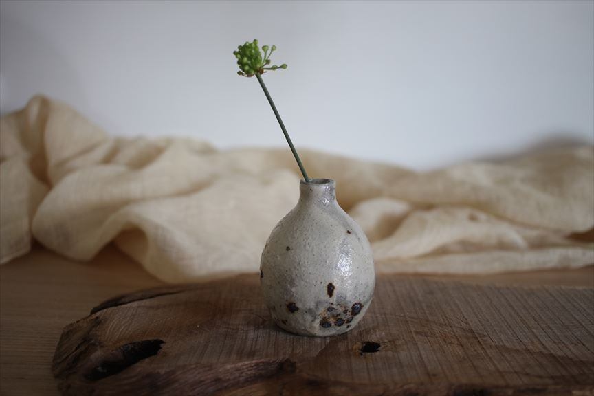 丸みを帯びた淡い生成りの作品や鉄粉の混ざる可愛らしいグレーの粉引きの作品など。