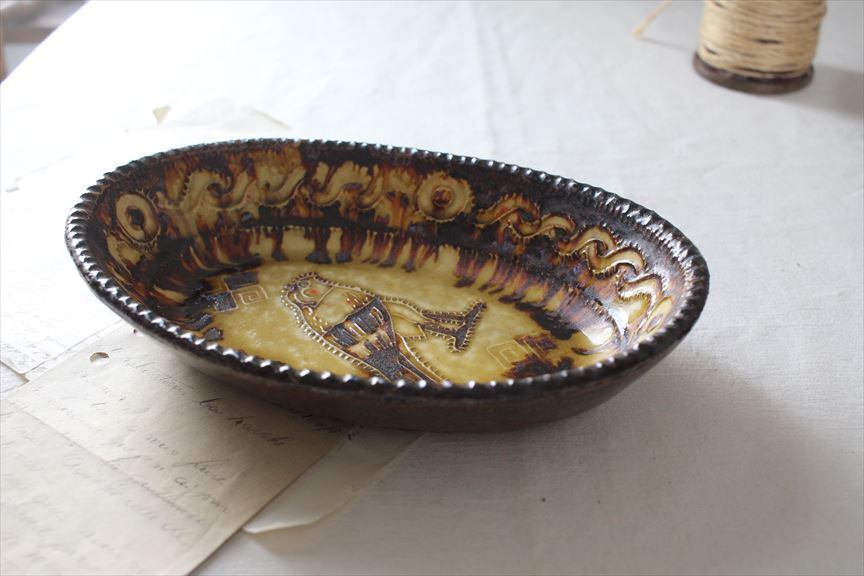 中川紀夫(紀窯)|スリップウェア 楕円鉢 押紋